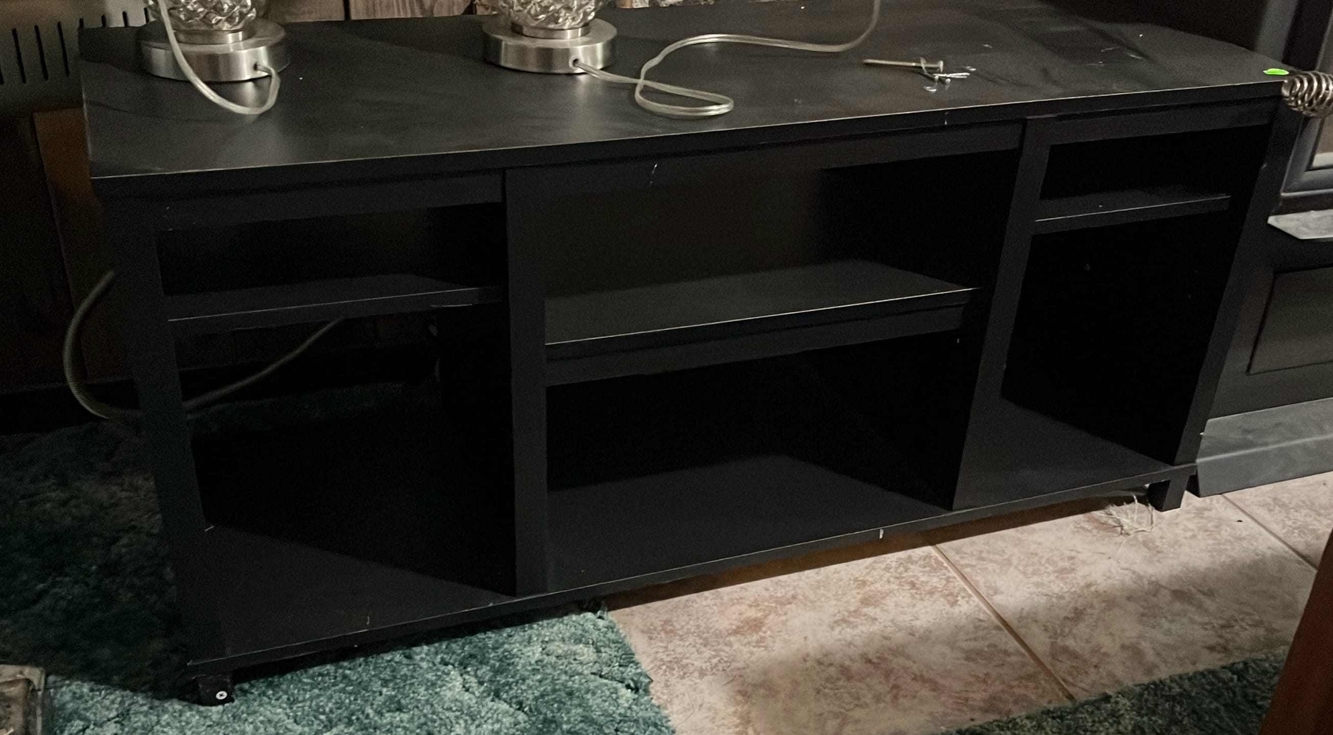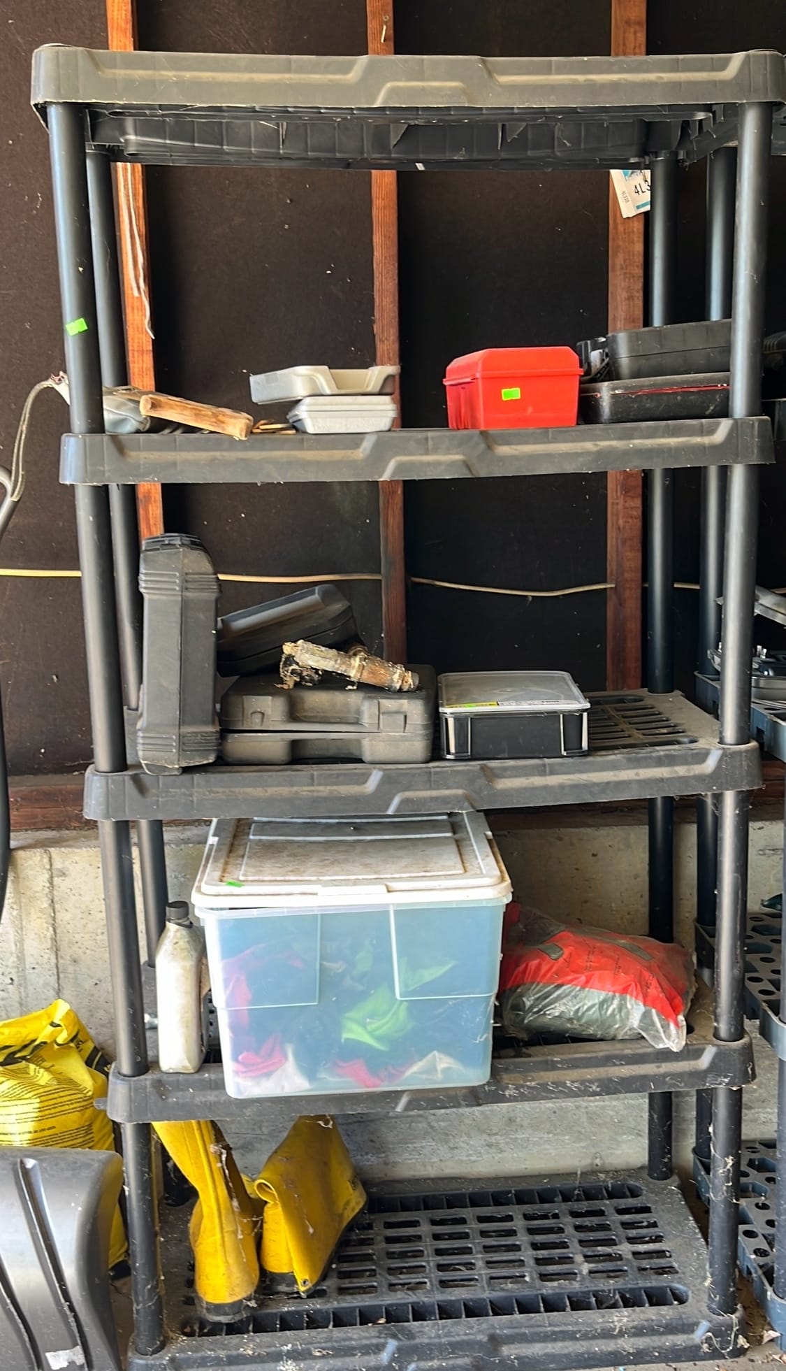727 Plastic shelf 36x17x74, DVD player, coolers, utility tires, contents