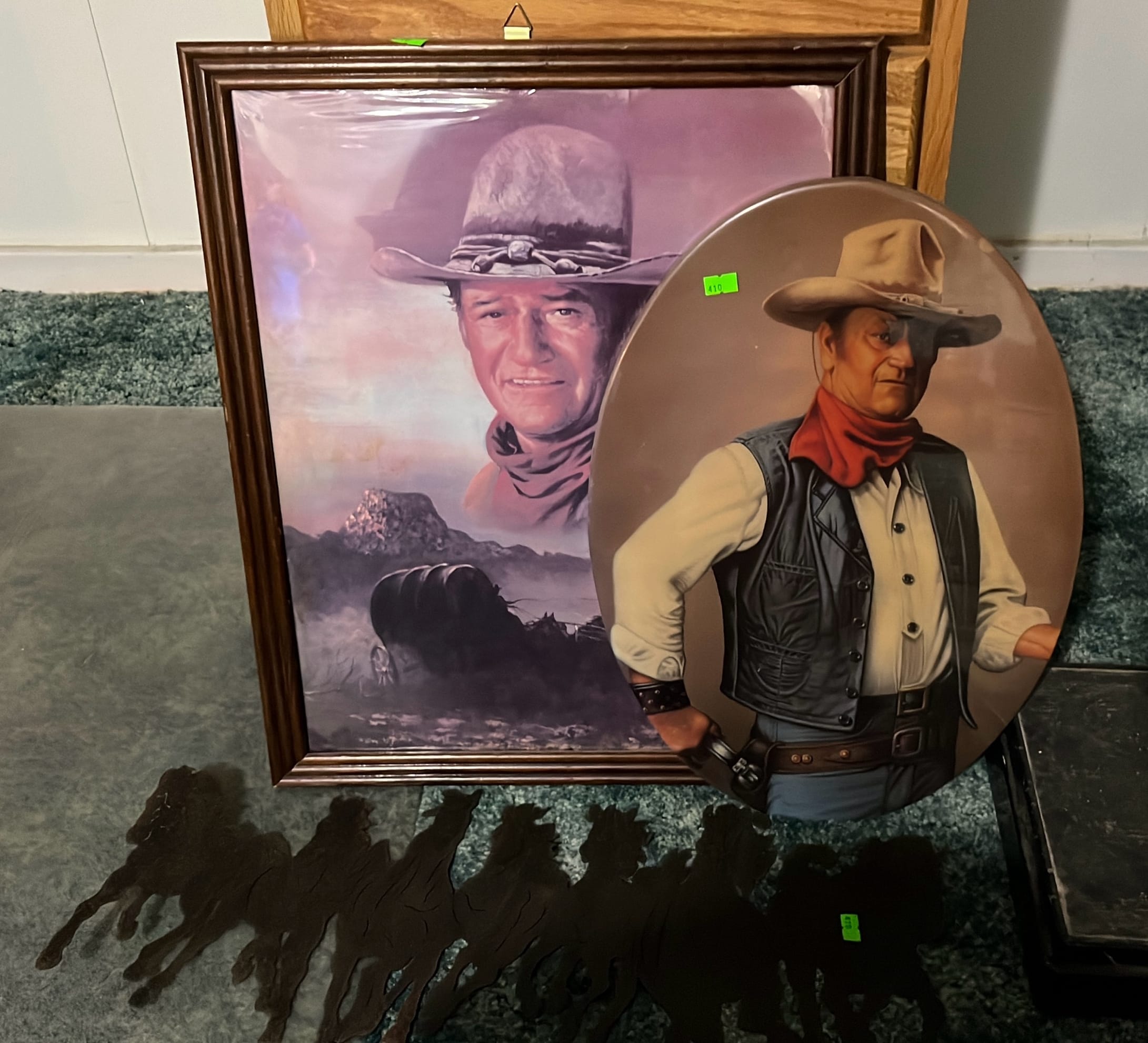 410 John Wayne pictures 18x22, 19x13, Metal horses wall decor