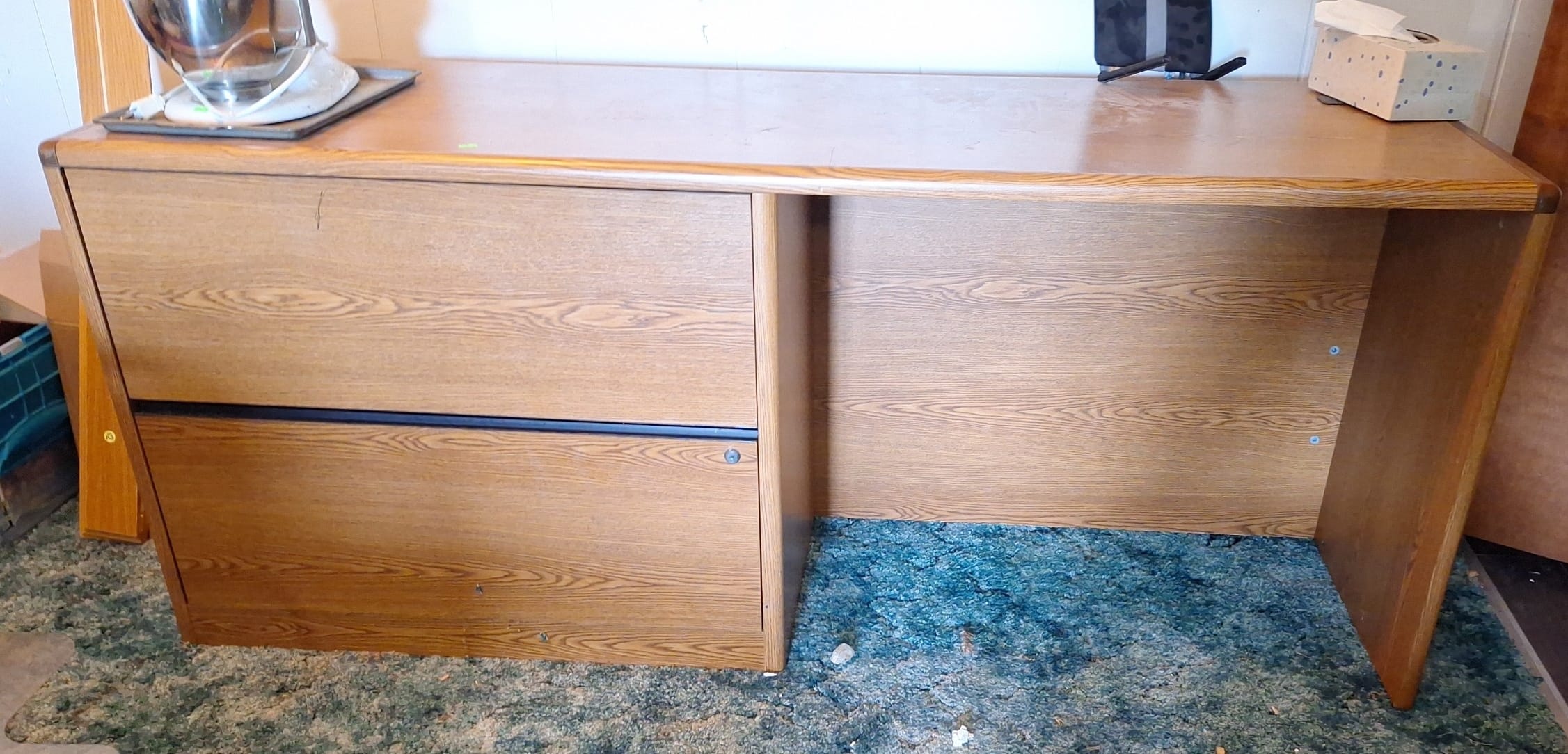 426 Sauder style desk w/ lateral file drawers 72x24x26" - no contents