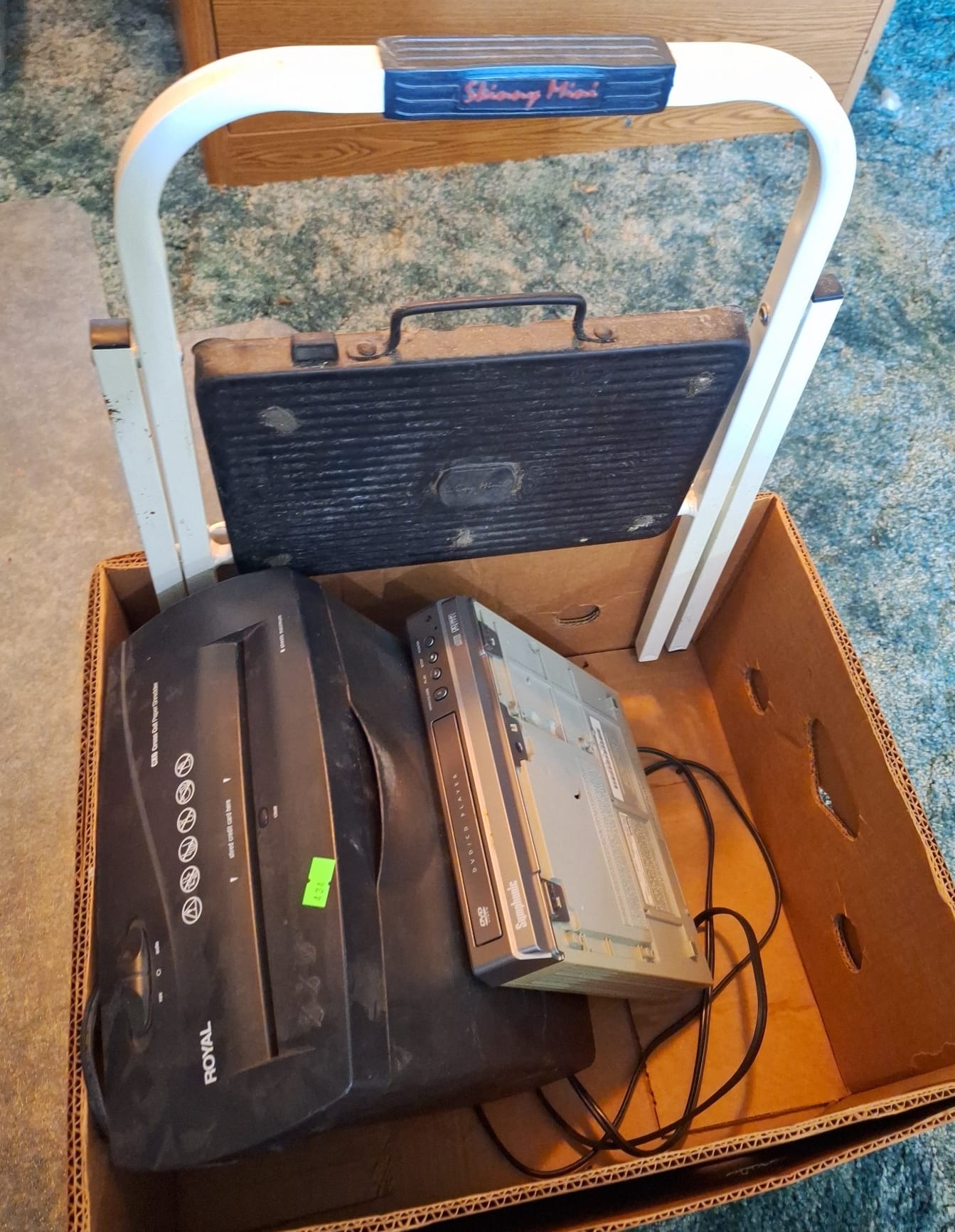 434 Royal paper shredder, 2-Step stool, Symphonic DVD player