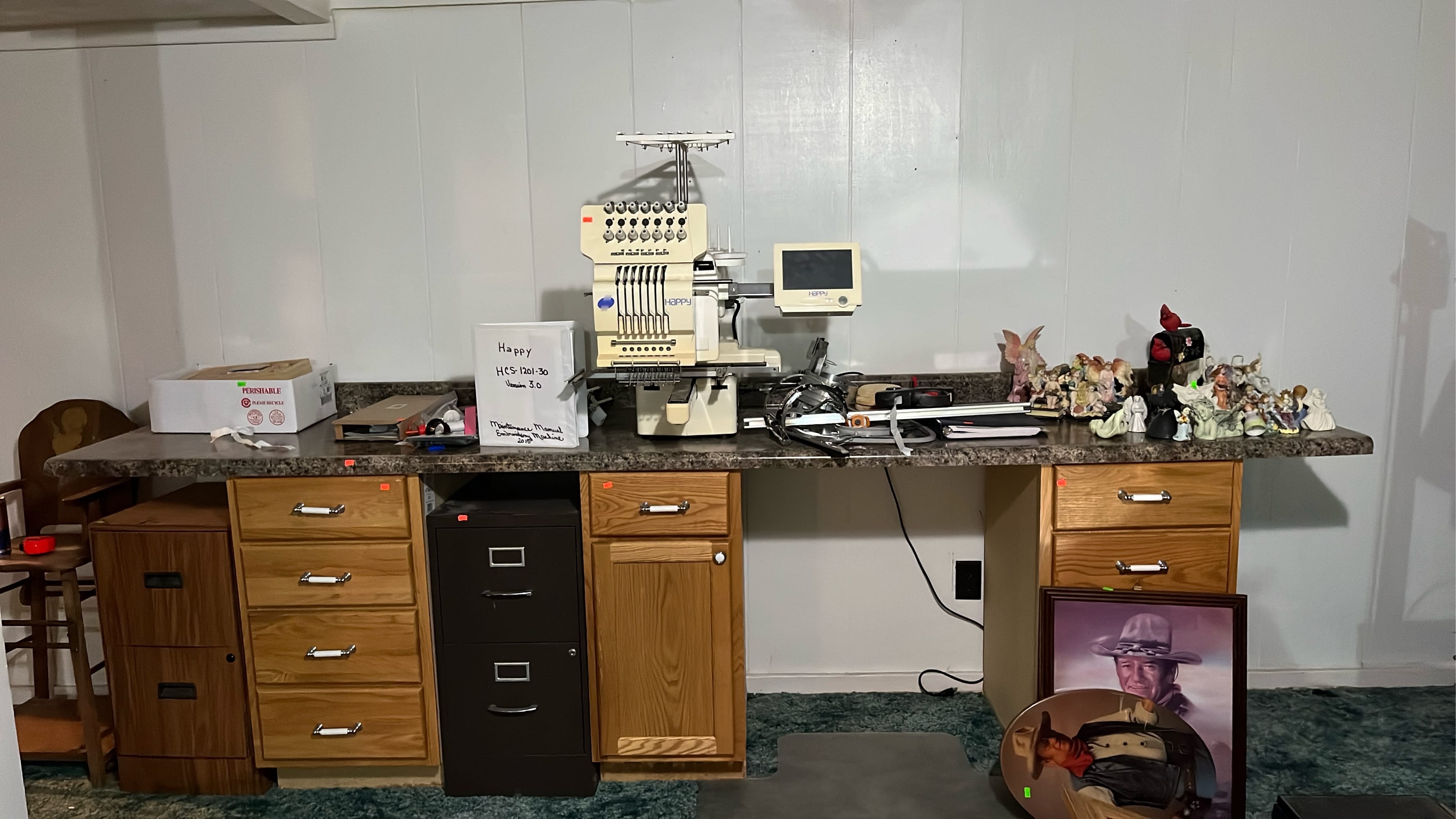 10 Happy Japan Inc. embroidery machine model HCH-701-30 with manual and accessories