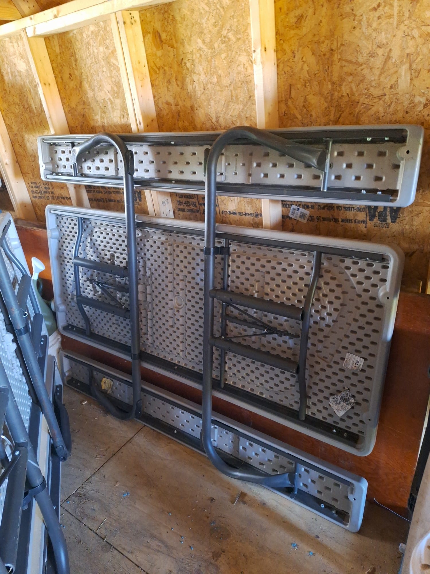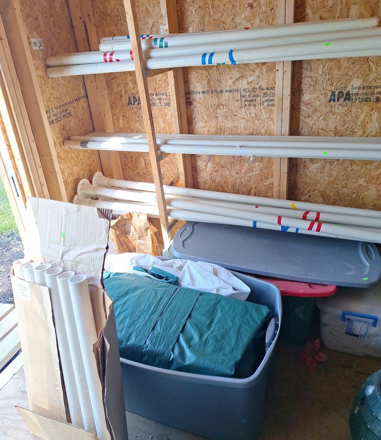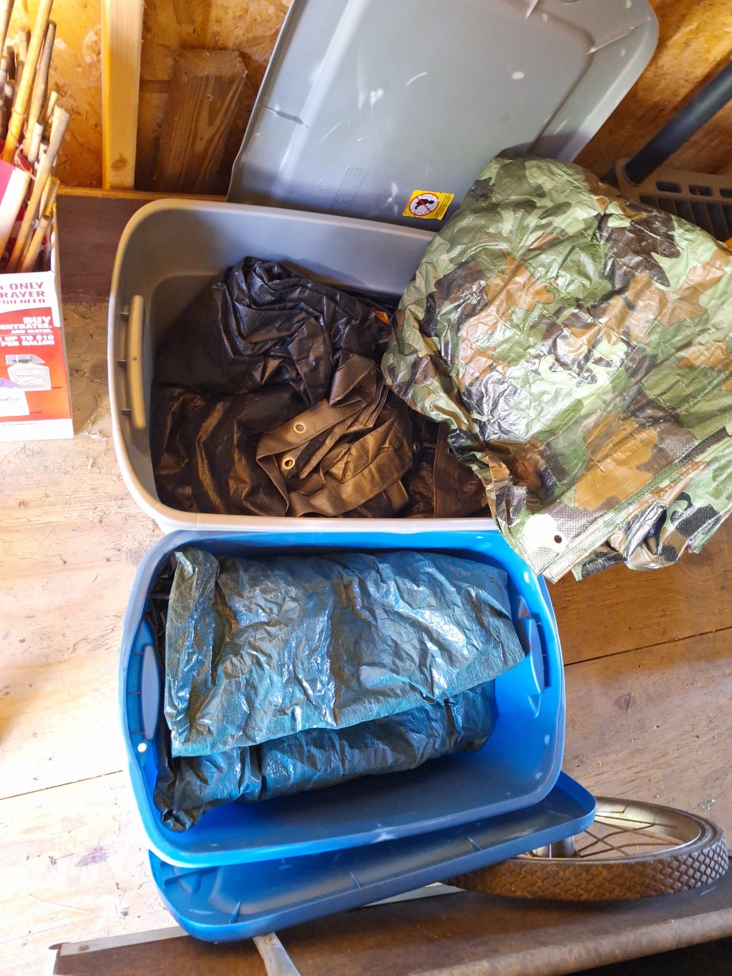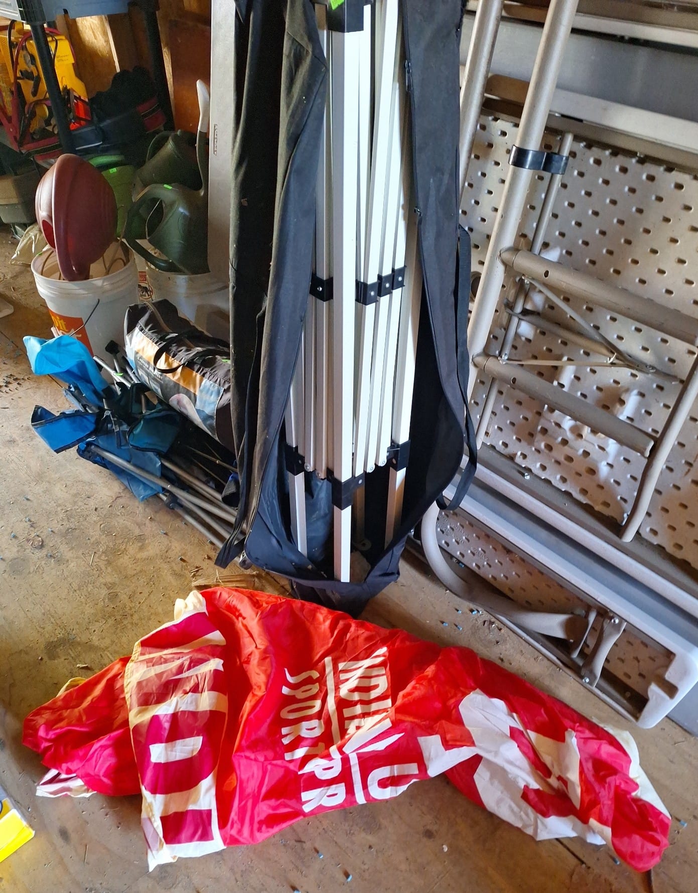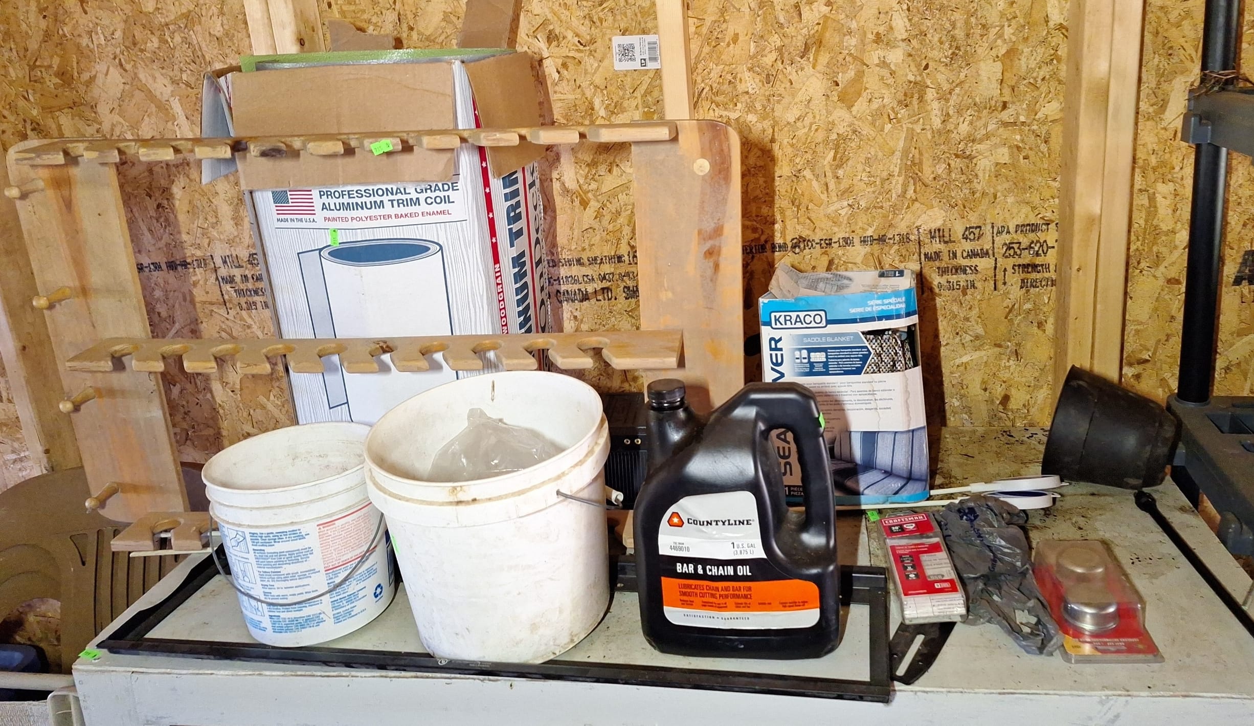 714 Plastic shelf 36x17x74, Ice melt, Rain jackets, Bungee cords
