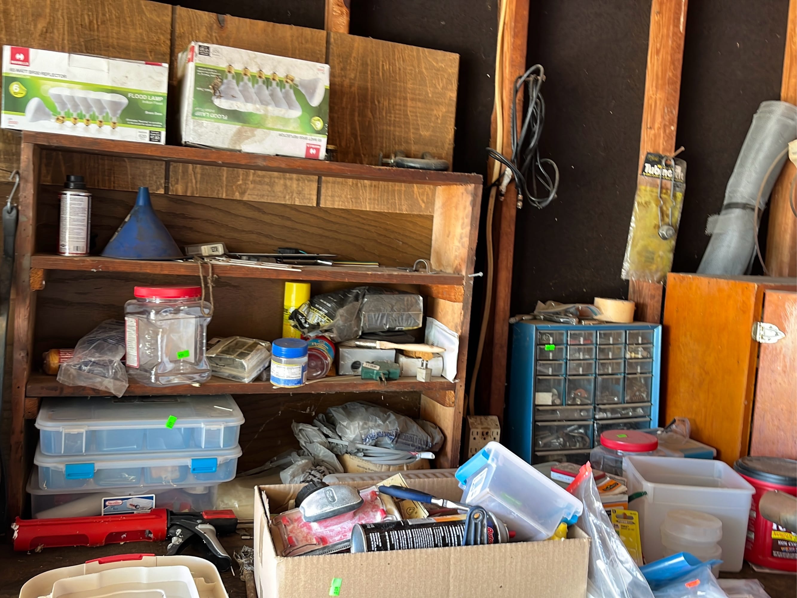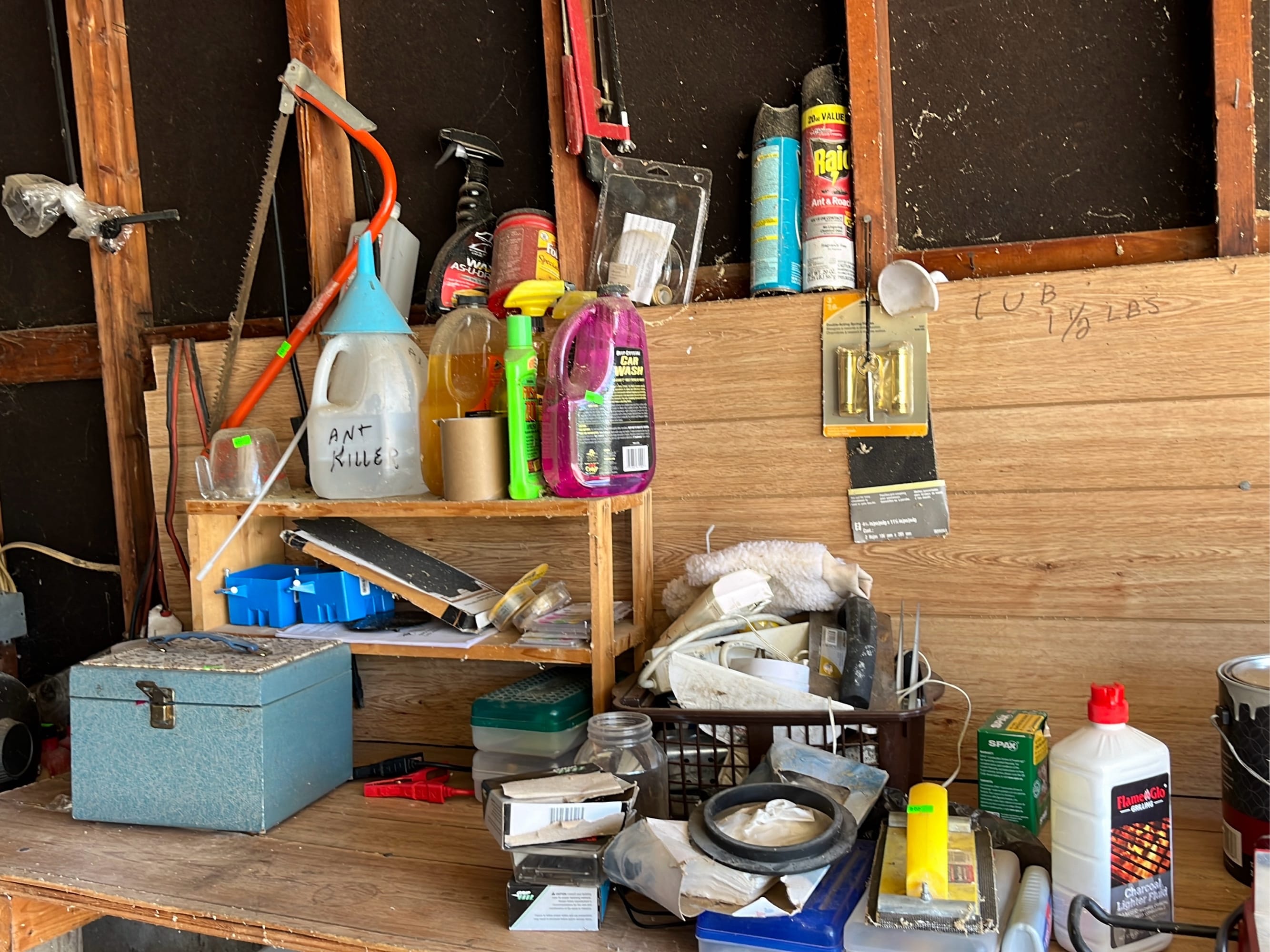 908 Contents on bench, Hardware assortment on back of bench - as shown in photos