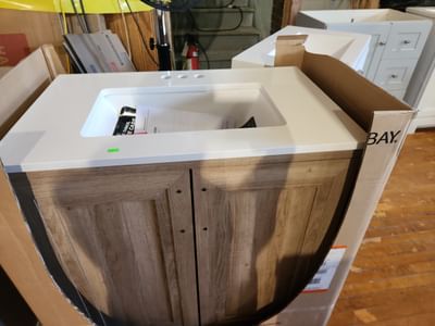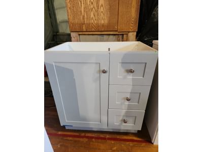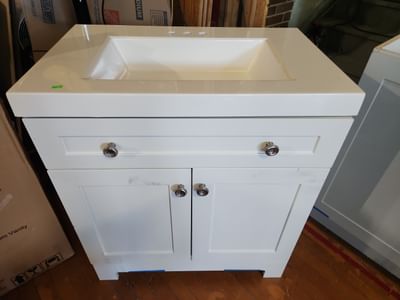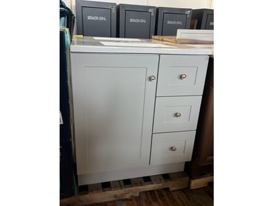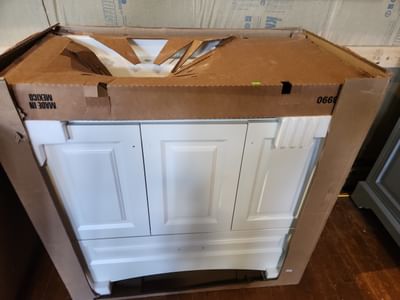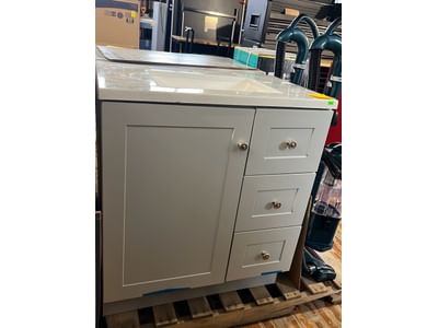 103 Glacier Bay vanity combo pearl gray 30.5x18.7x35.1”, chipped