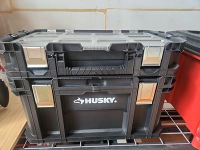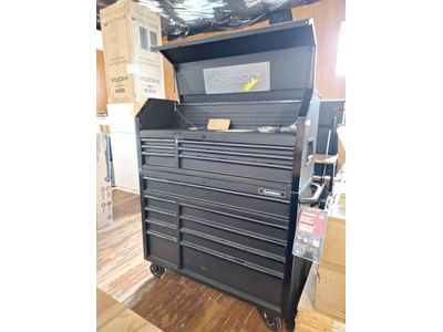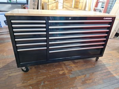 180 Husky 15 Drawer heavy duty tool chest and cabinet combo, Several dents, drawers work as they should, has keys 52"