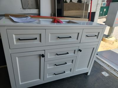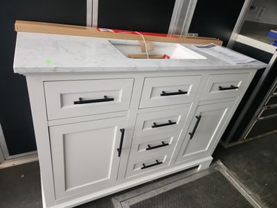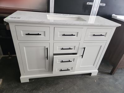906 Single vanity, soft close drawers no fixtures or backslash 48"