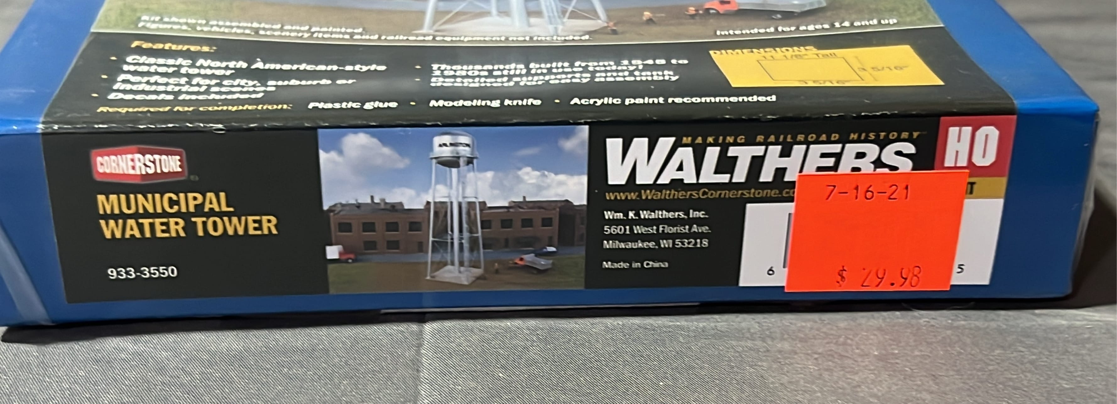 1521 Walthers Cornerstone HO Kit NIB - Municipal Water Tower