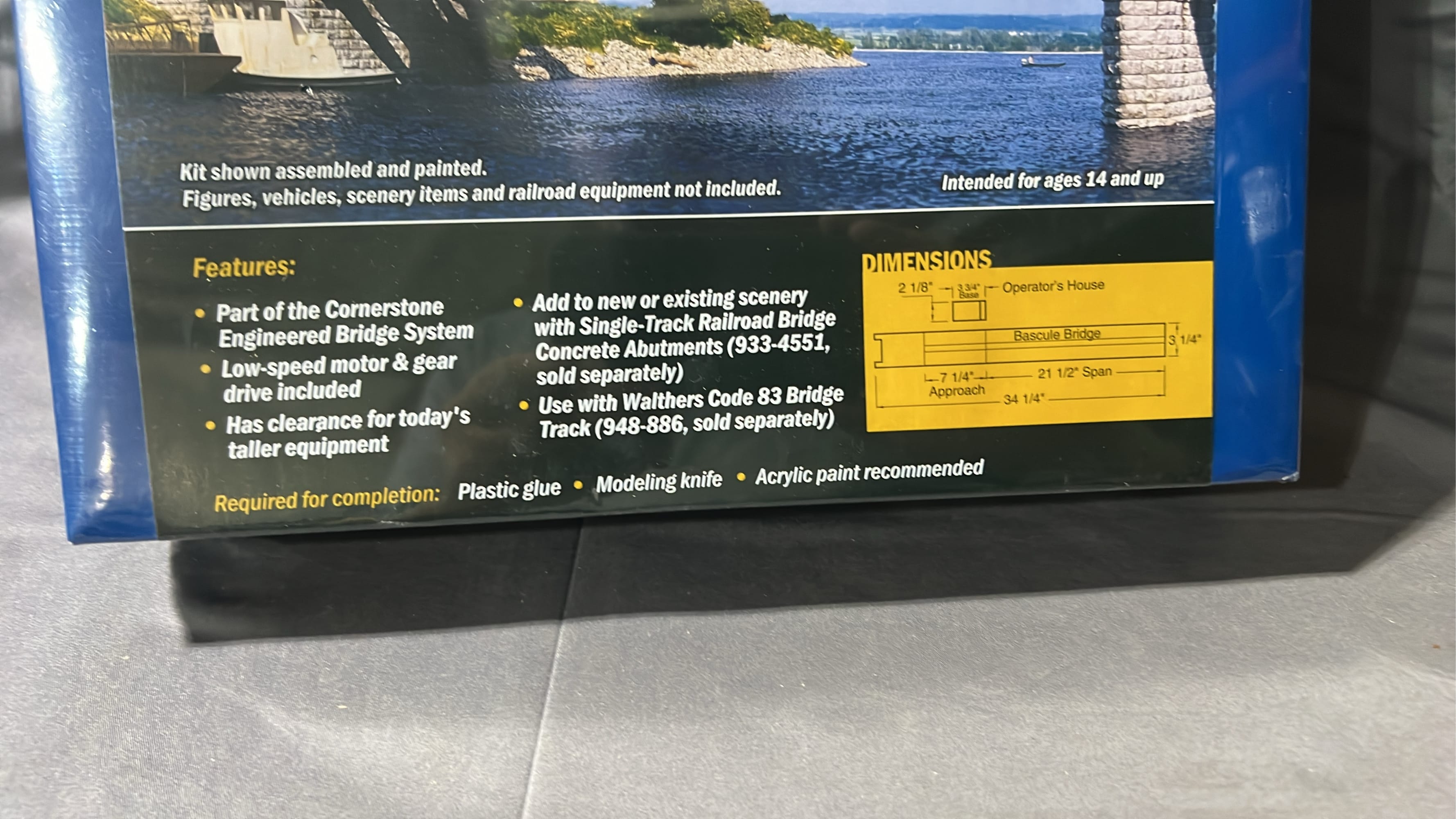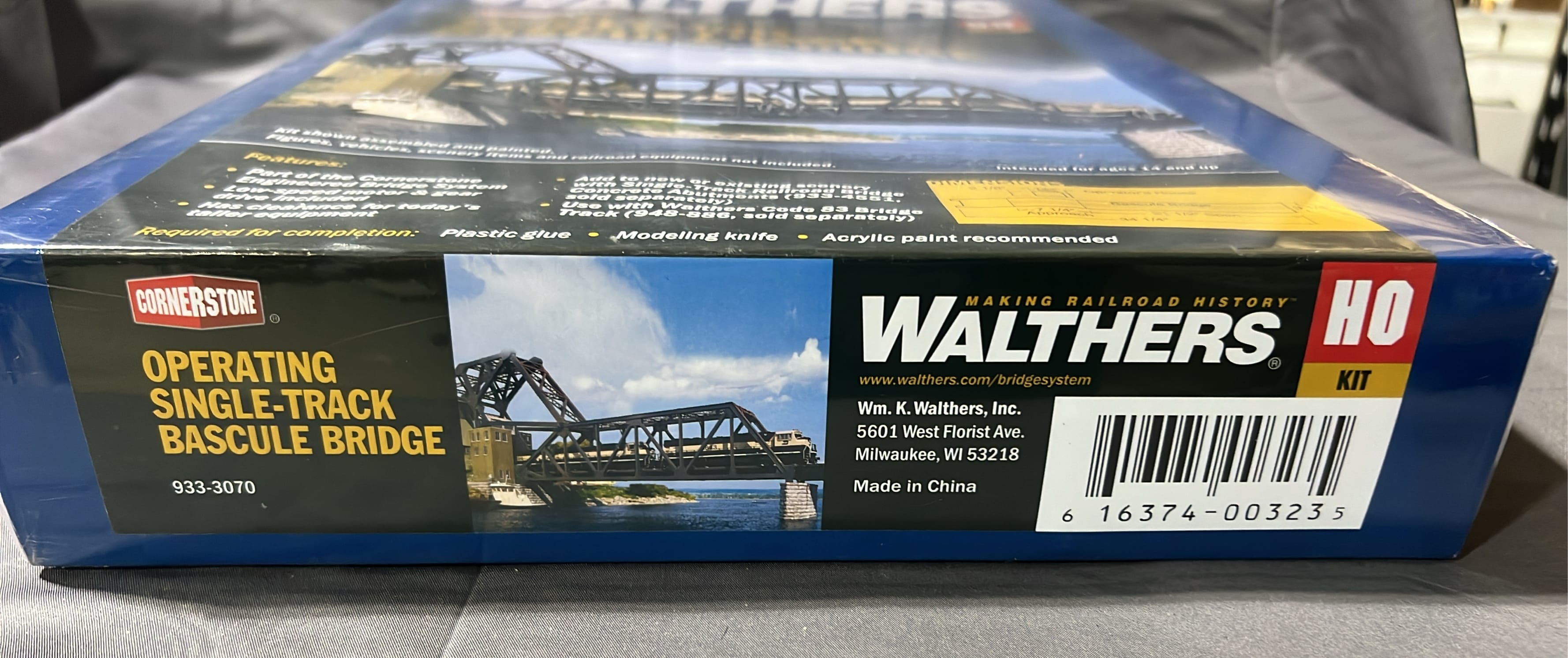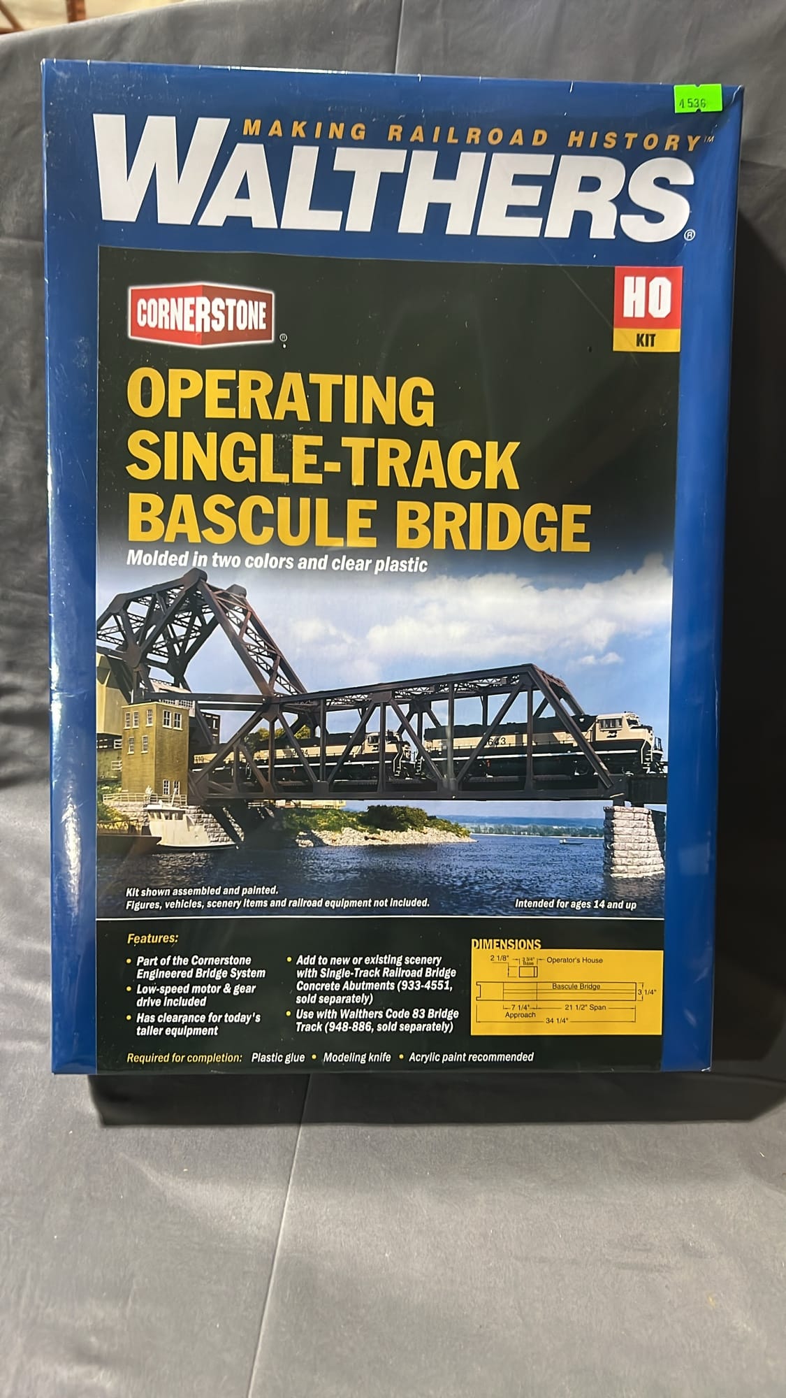 1536 Walthers Cornerstone HO Kit NIB - Operating Single-Track Bascule Bridge