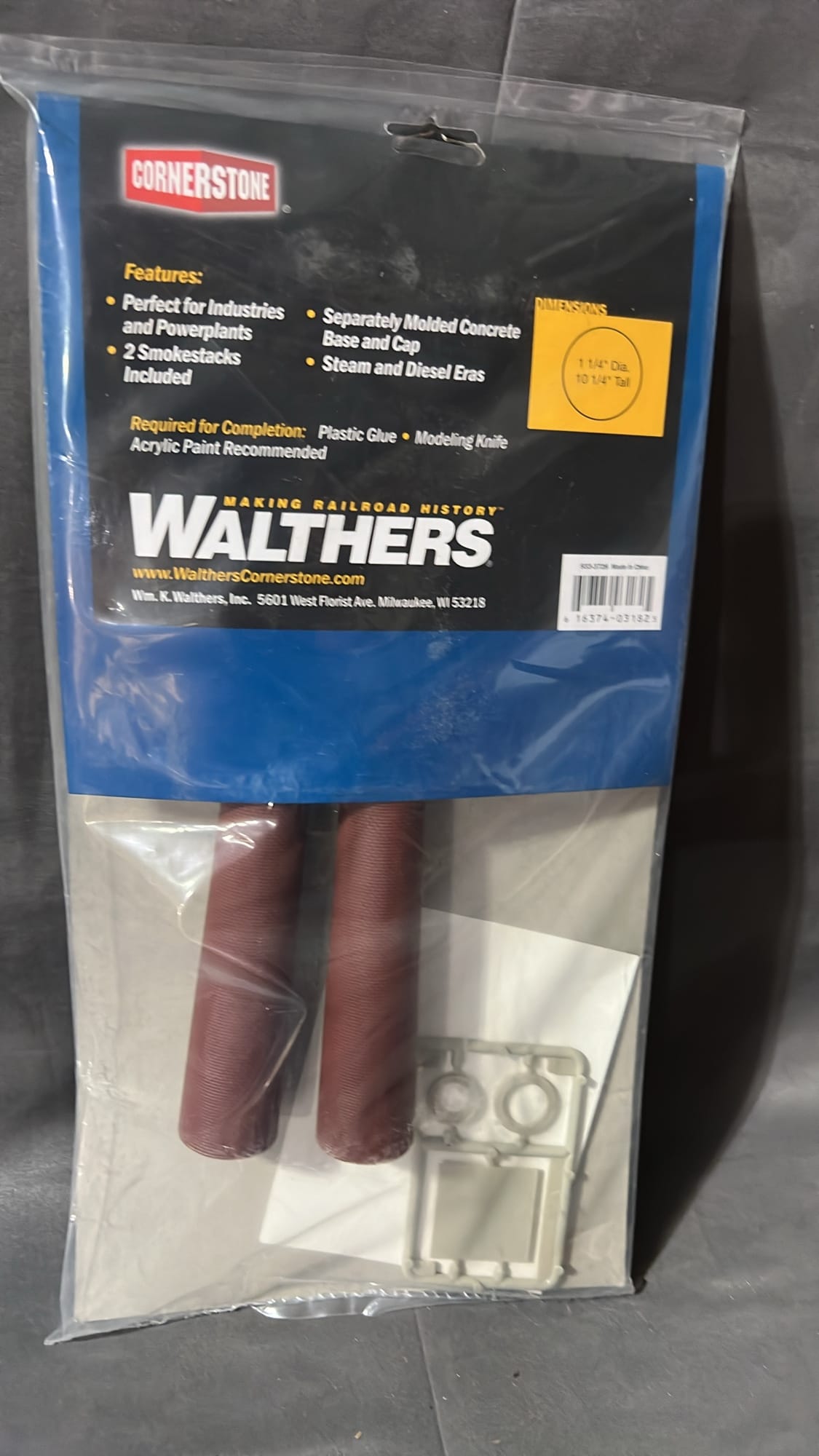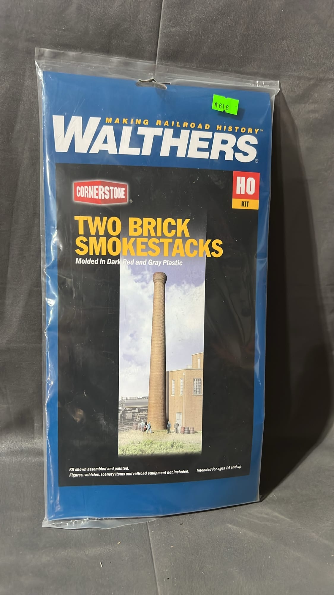1616 Walthers Cornerstone HO Kit NIP- Two Brick Smokestacks