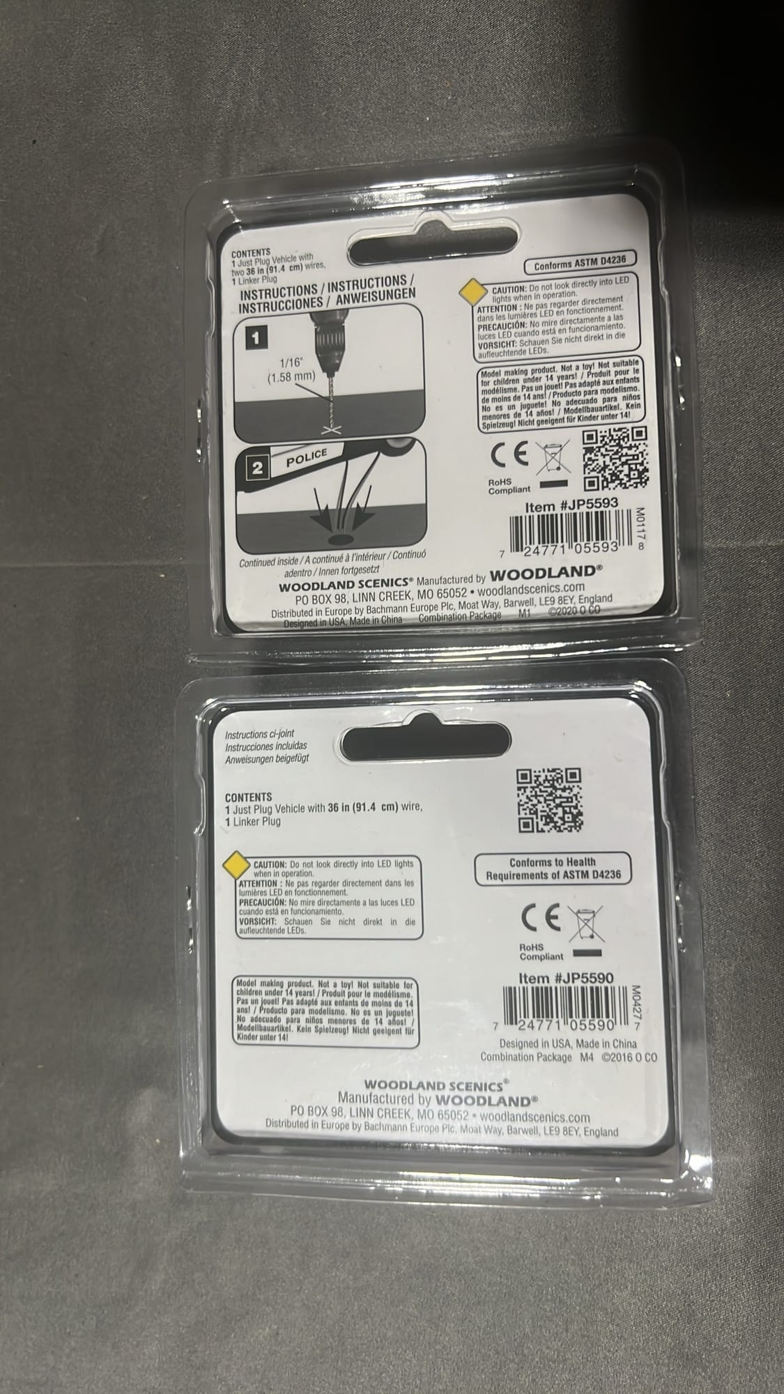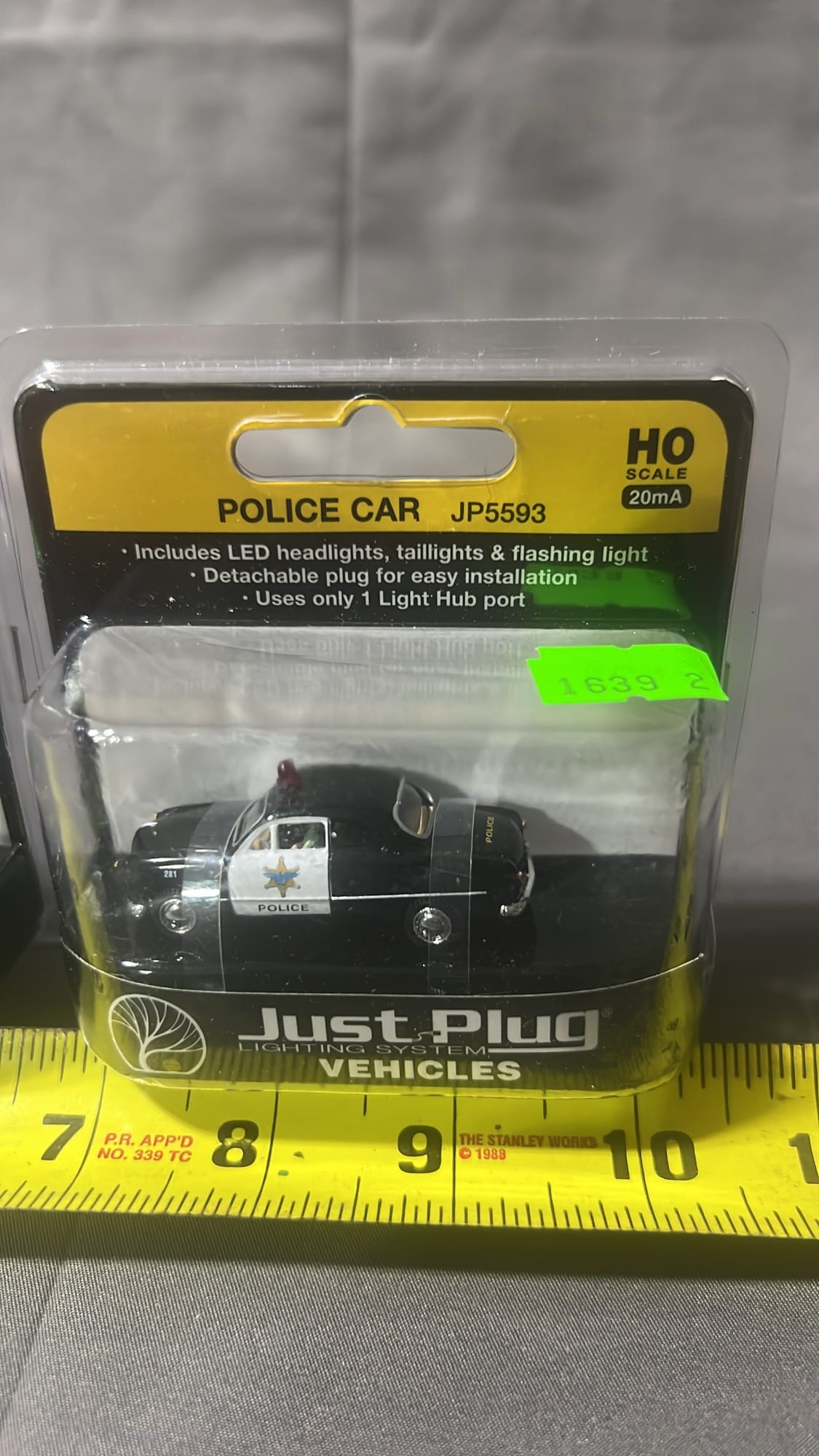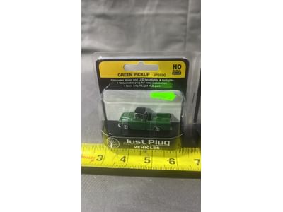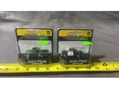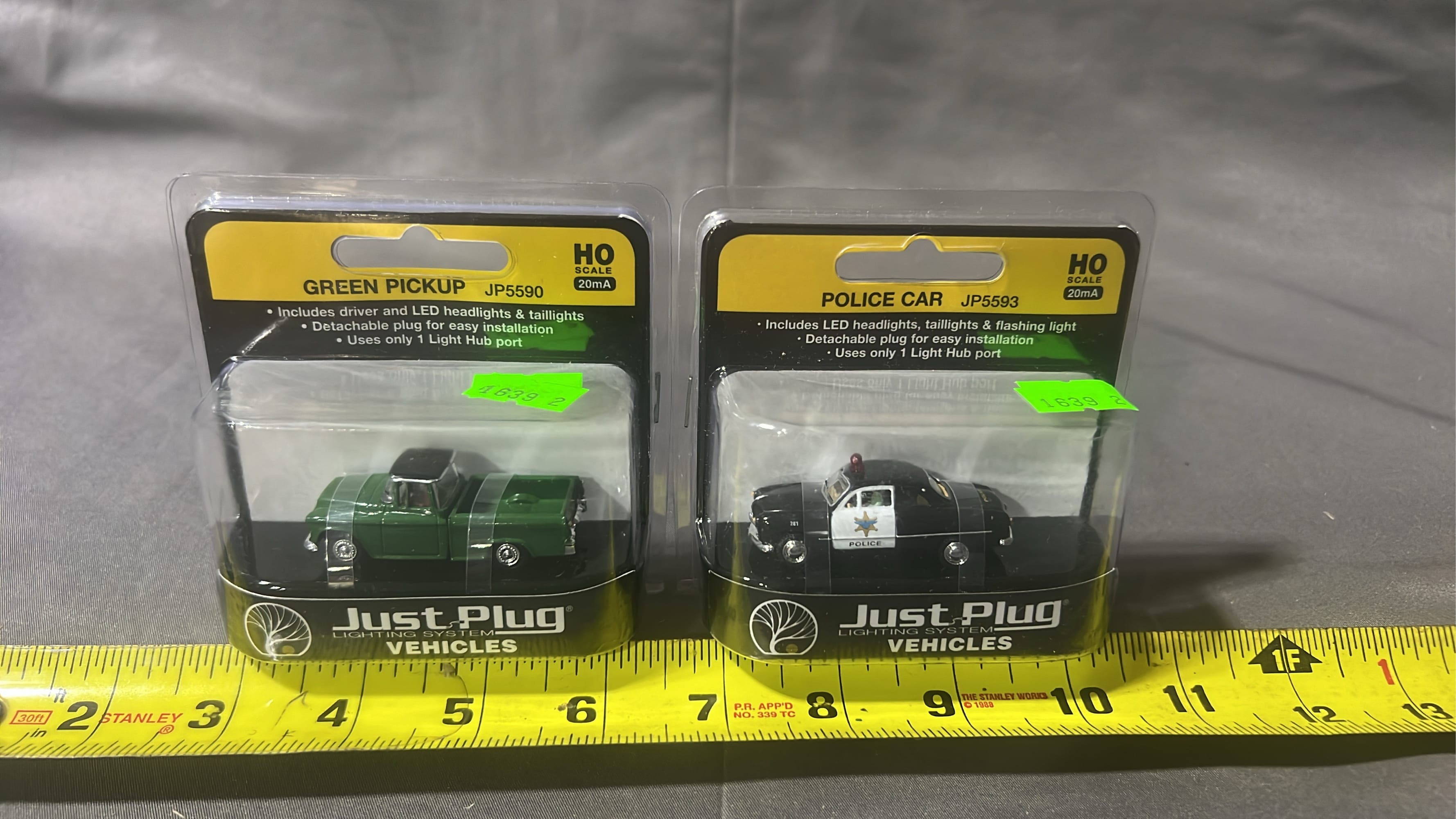 1639 Just Plug Lighting System Vehicles Green Pickup & Police Car HO Scale 20mA NIP