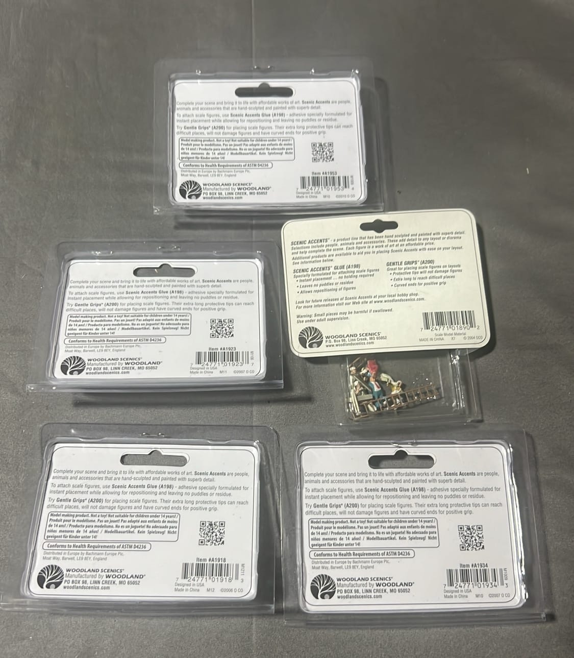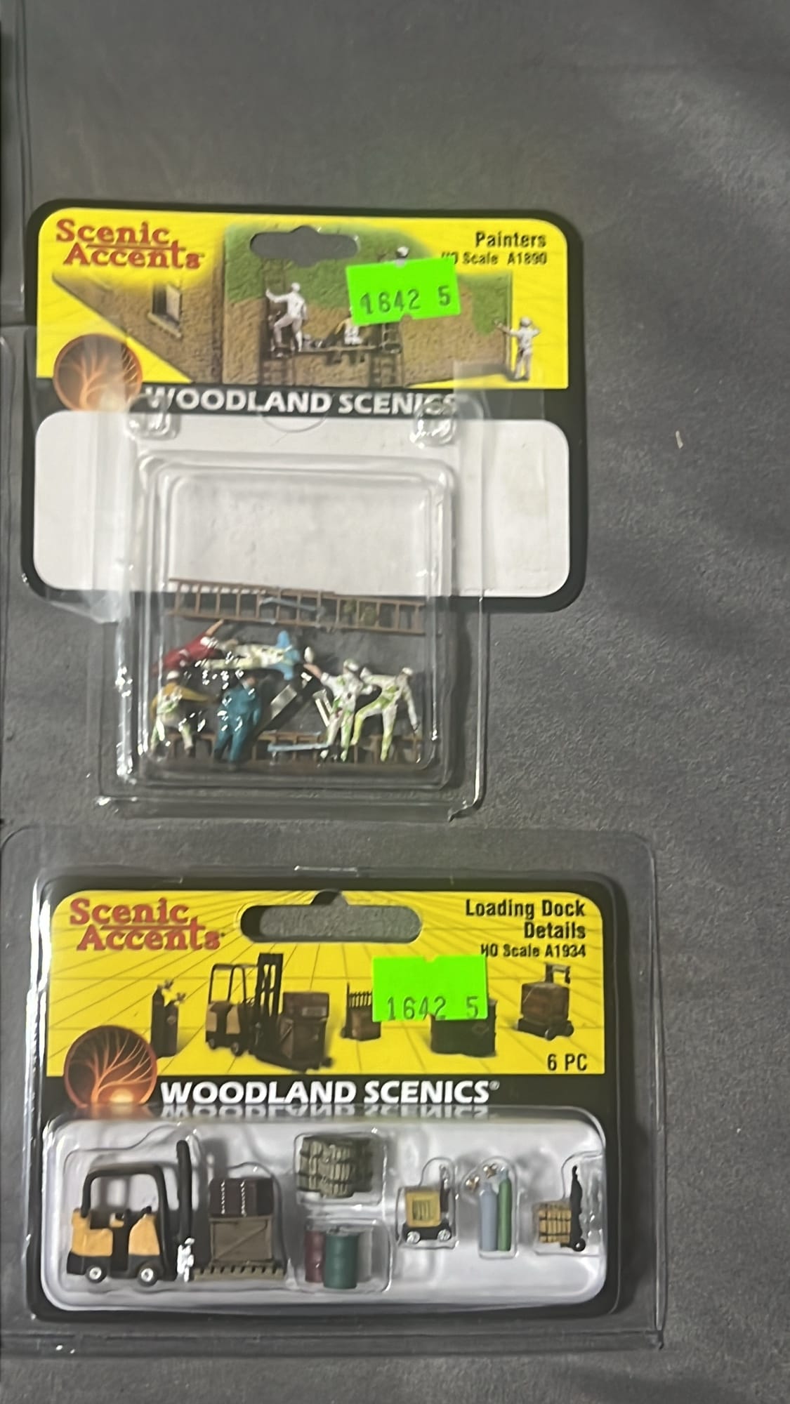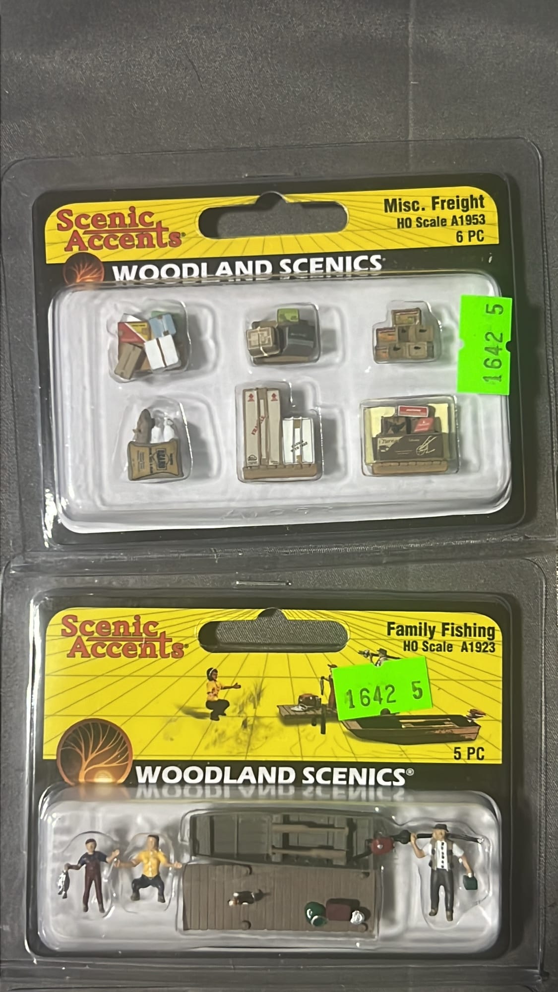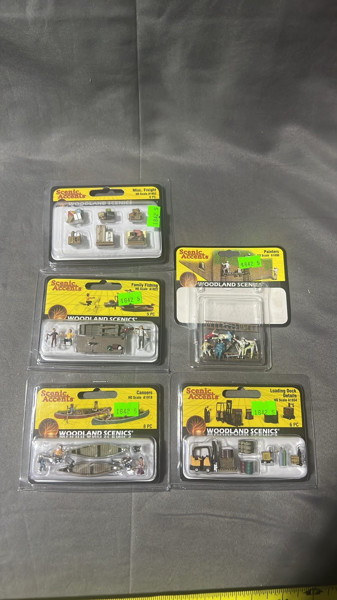 1642 Auto Scenes Woodland Scenics HO Scale NIP - Family Fishing • Painters • Canoers • Misc Freight • Loading Dock Details
