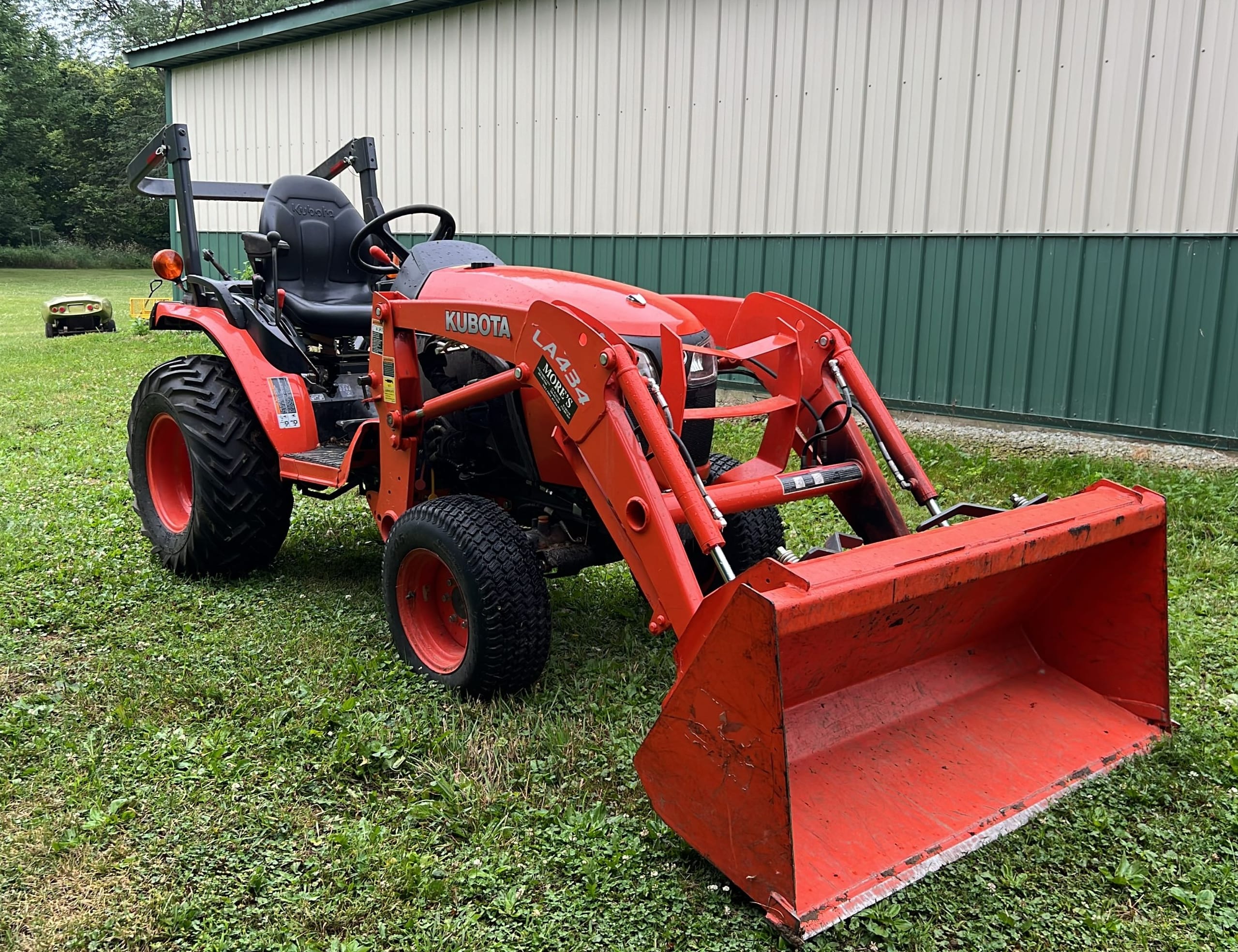 1 Kubota B2301 ,Diesel tractor , 206 hrs , FWD , serial # B2301HSD56753 , has LA 434 loader attachment with , 53” bucket , roll bar , 3pt hitch , 540 PTO
