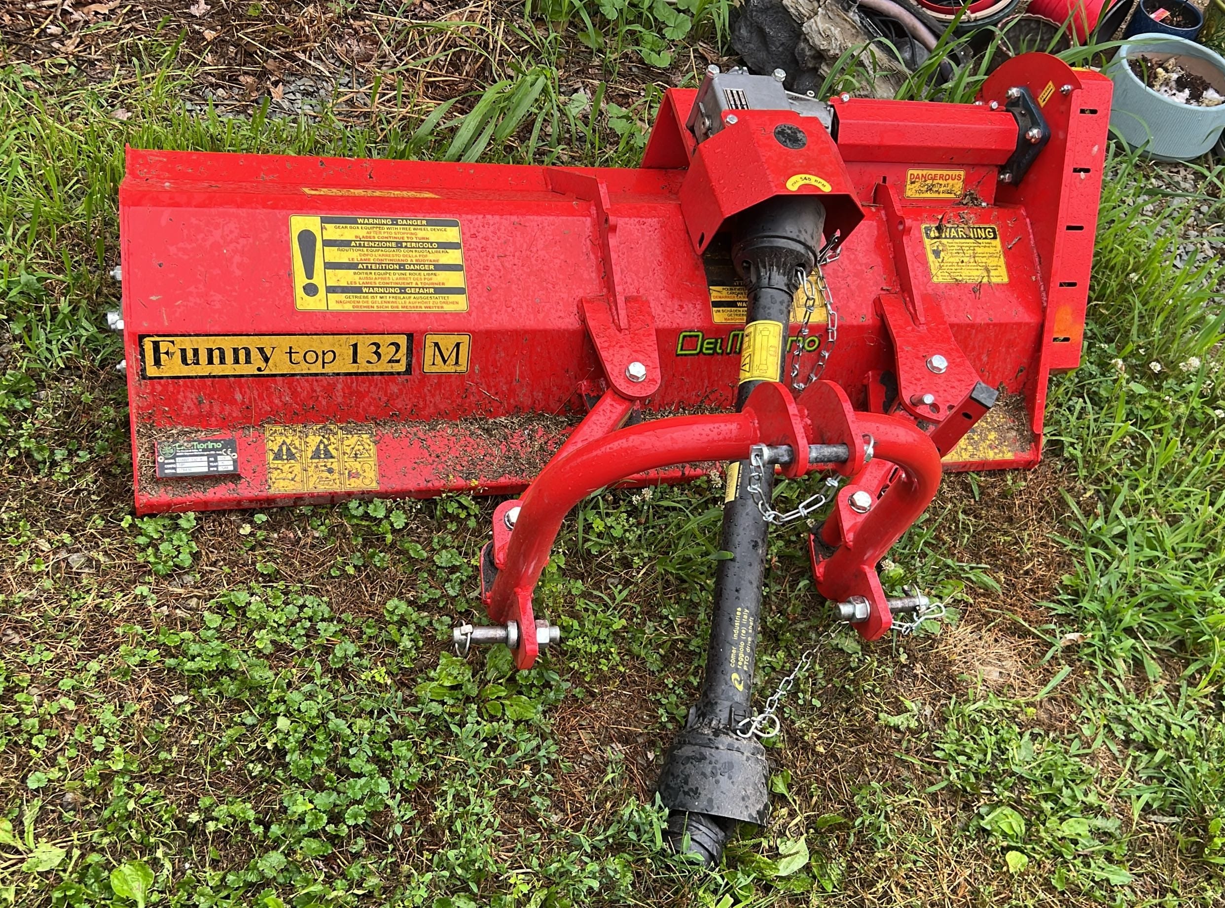 5 Del Morino Funny Top 132 m flail mower, 54” has a bearing out on one bar