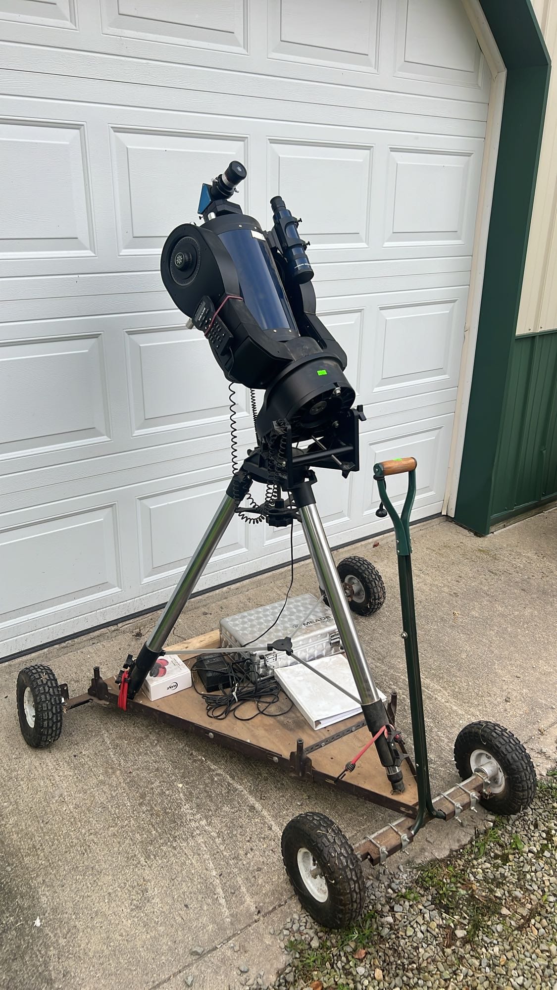 20 Meade LX200GPS Schmidt-Cassegrain Telescope with Autostar II Hand Controller & Accessories on Four Wheel Cart 55”x49”