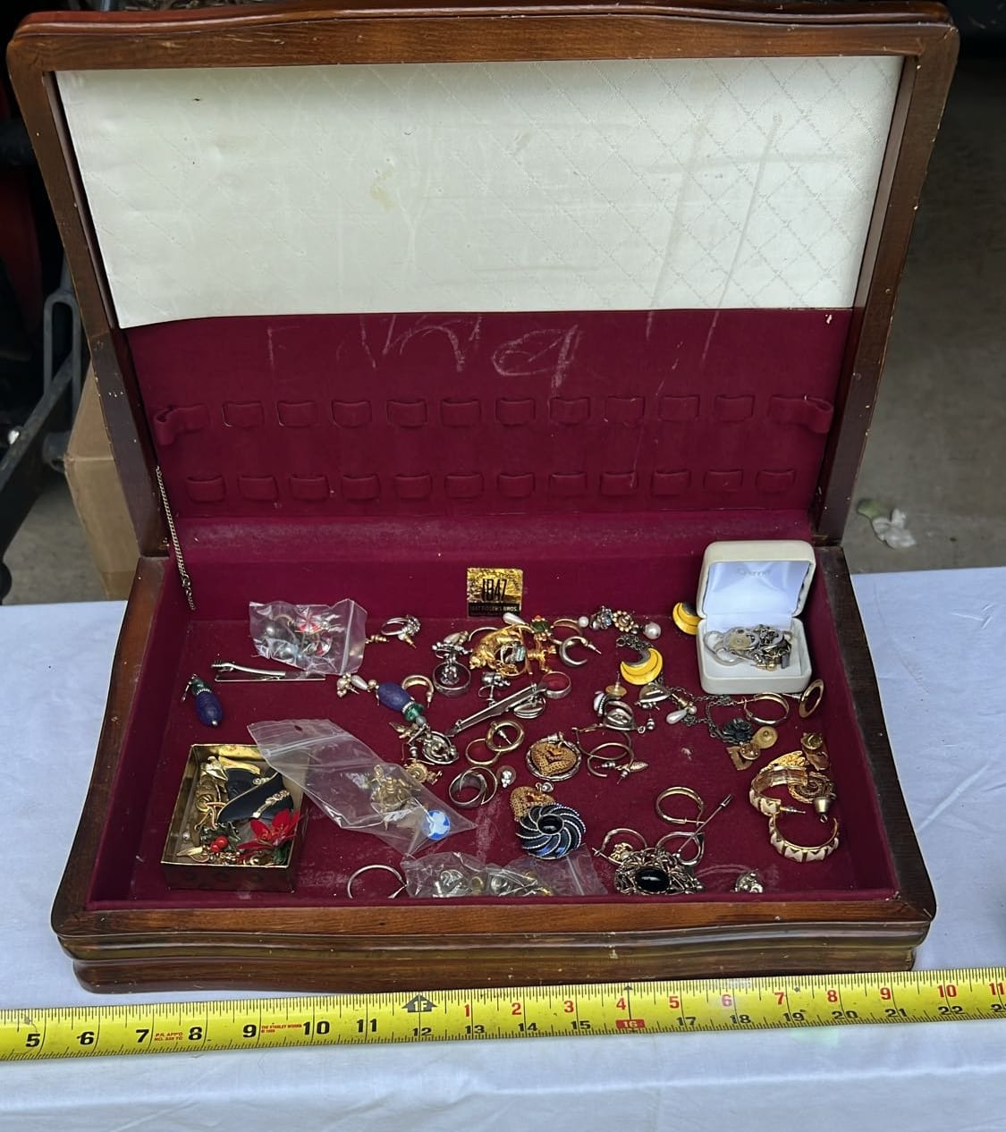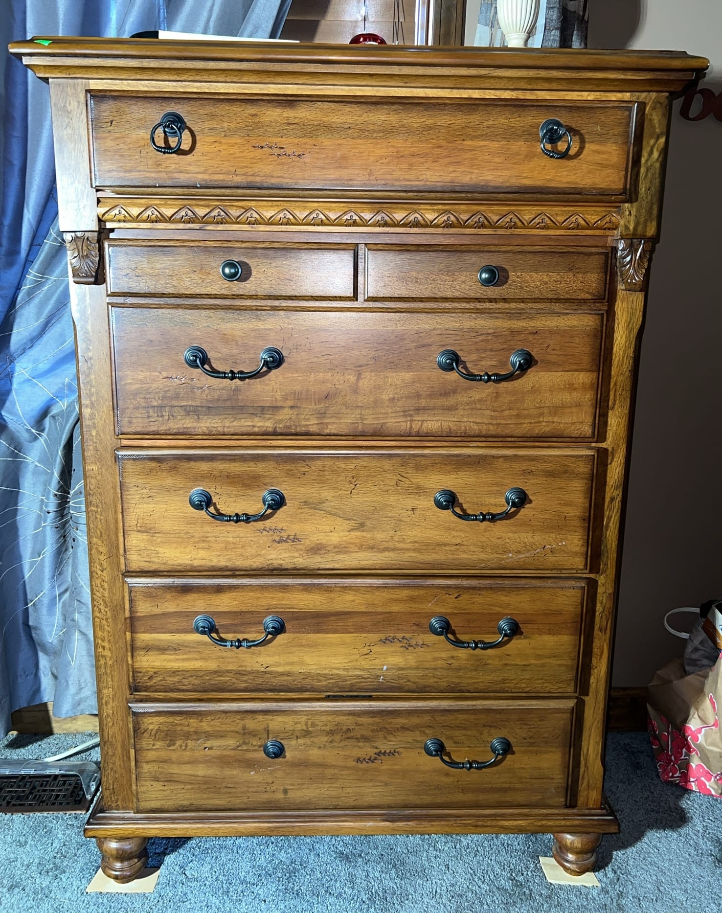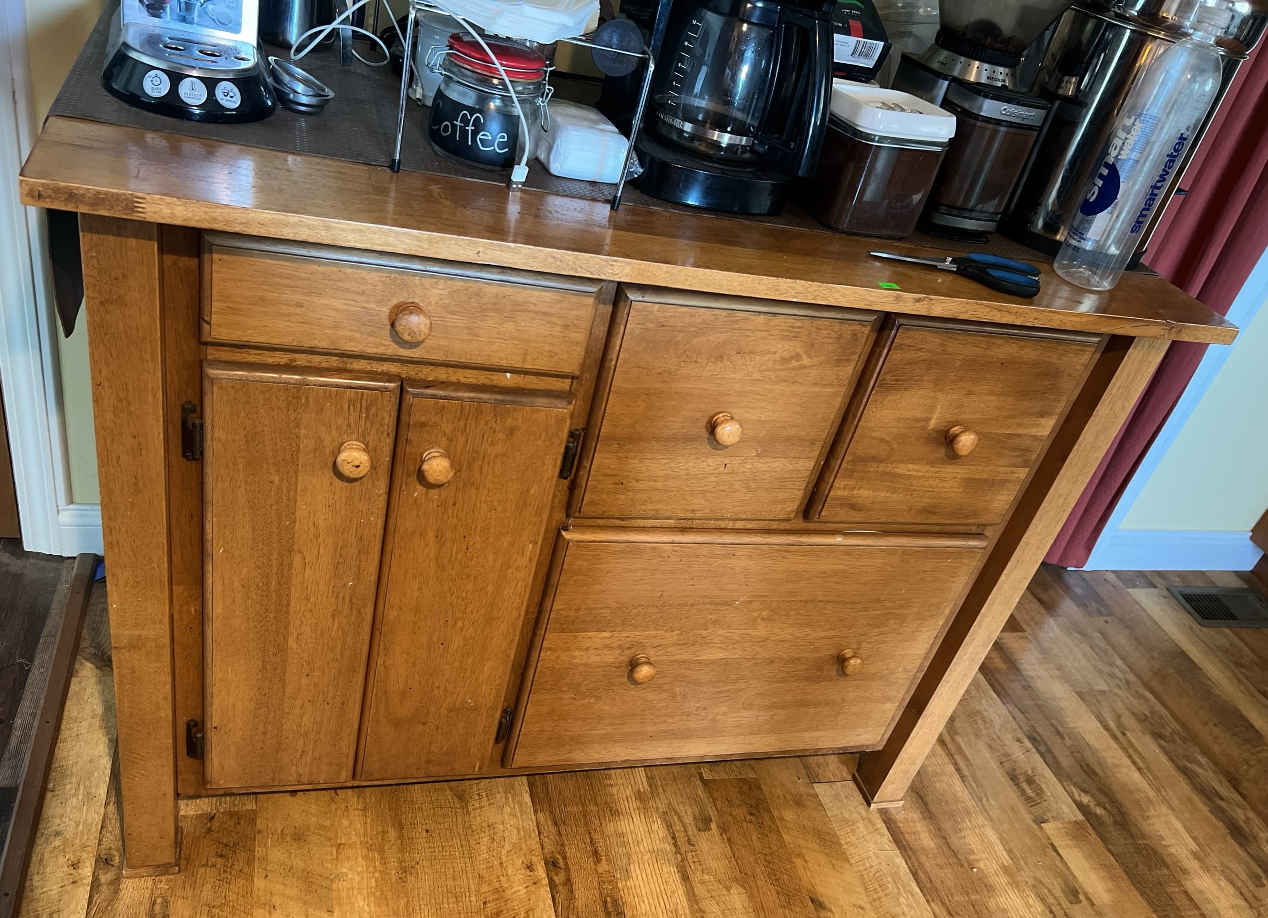 798 Dresser and contents , 17” 31”x37 “ and contents see pictures ,drawers need repair