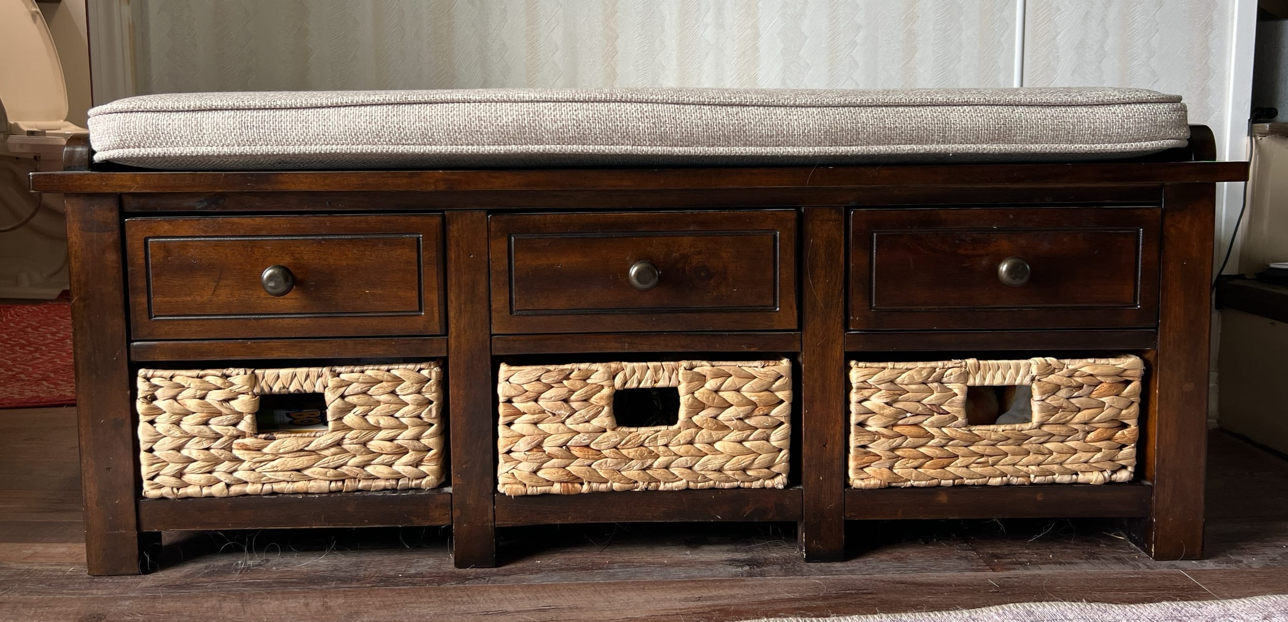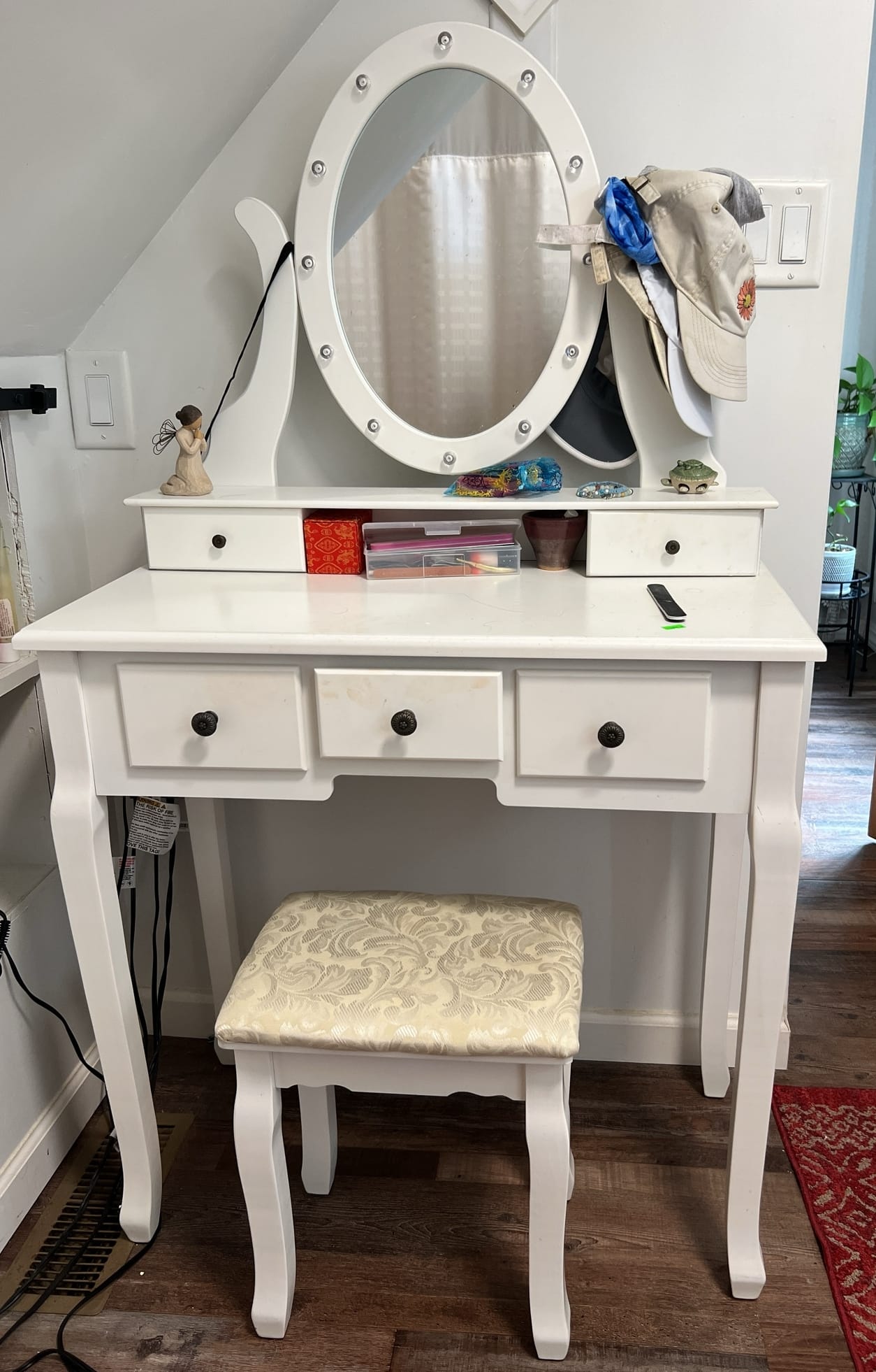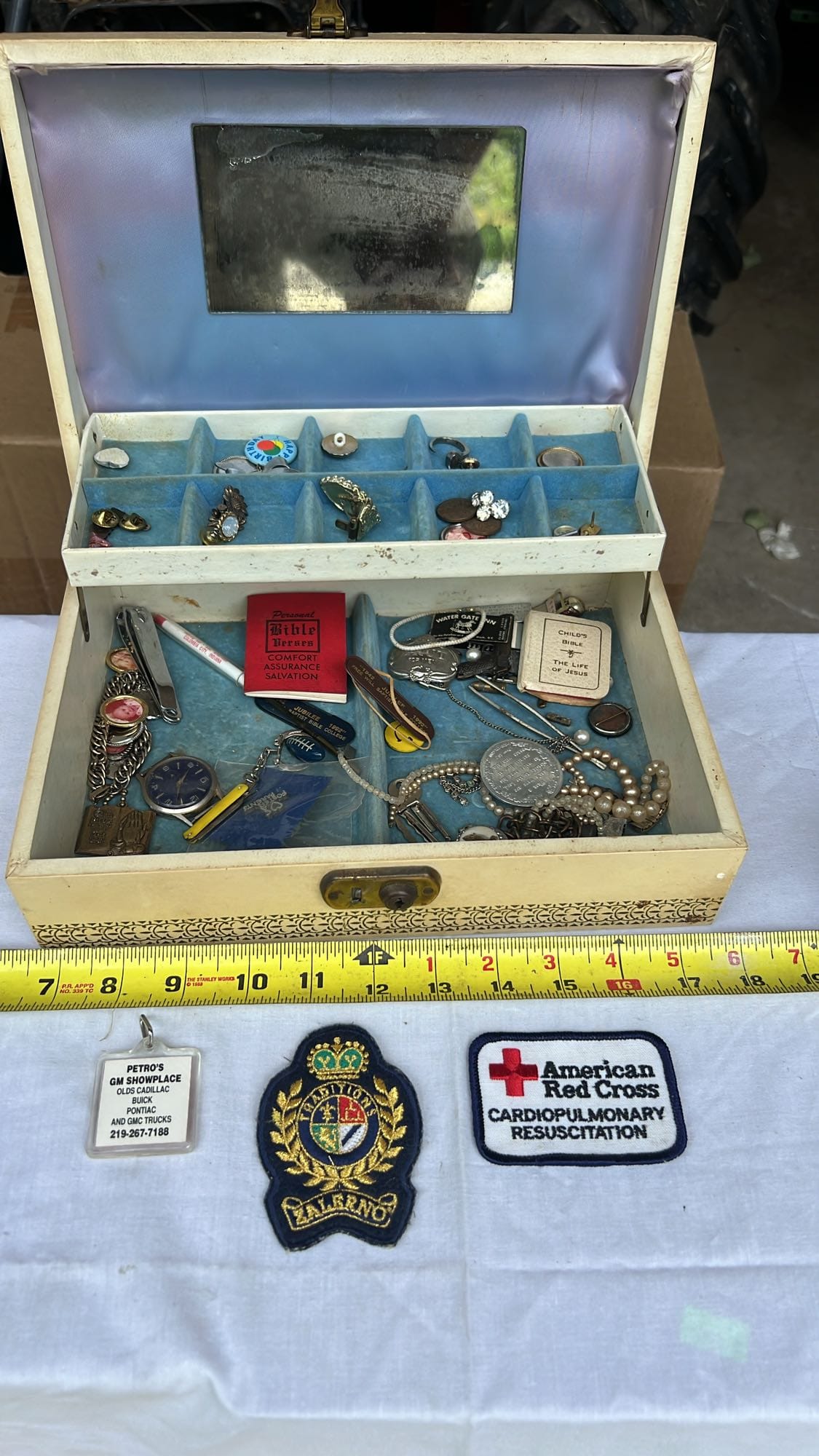 798 Dresser and contents , 17” 31”x37 “ and contents see pictures ,drawers need repair