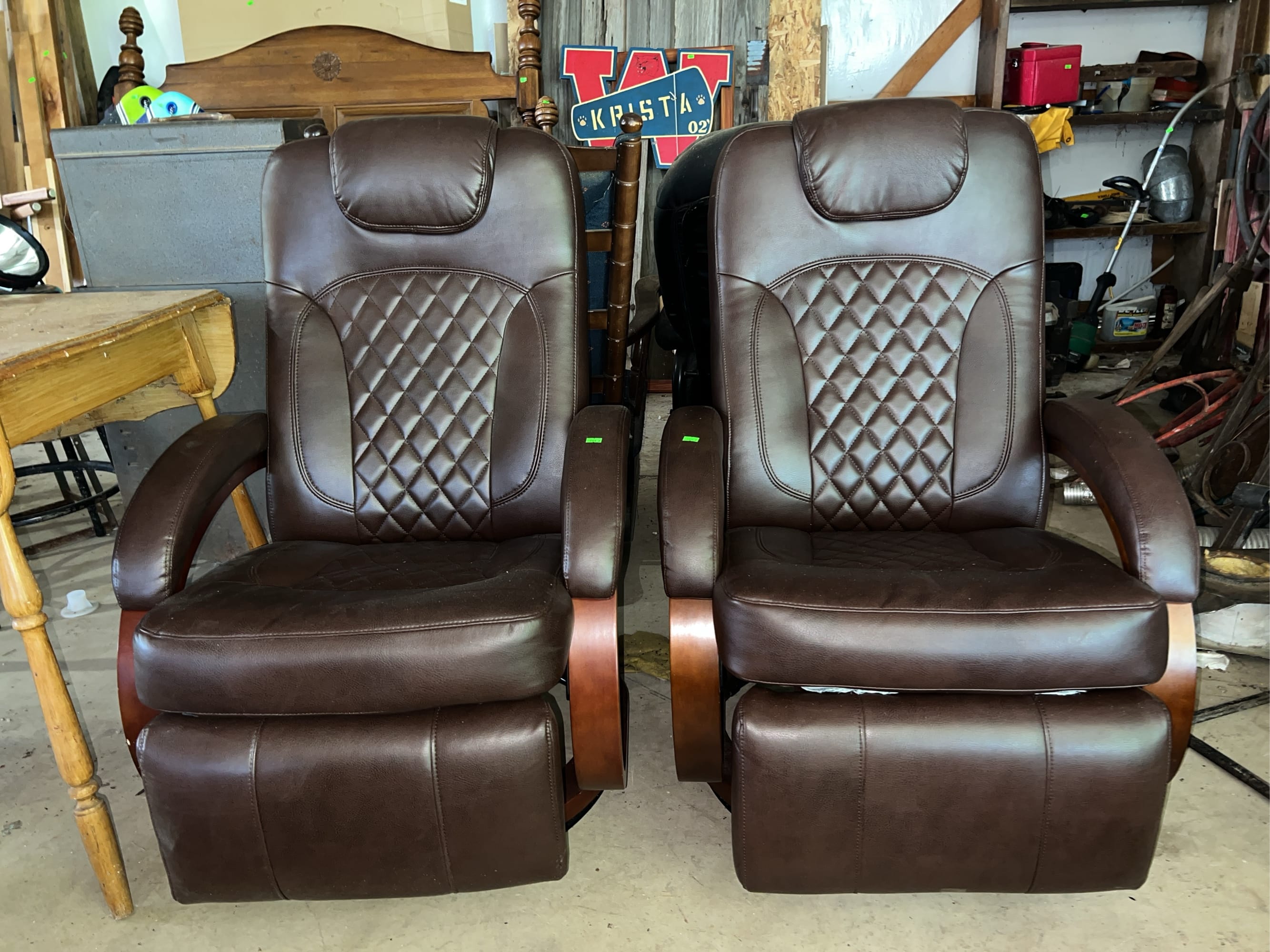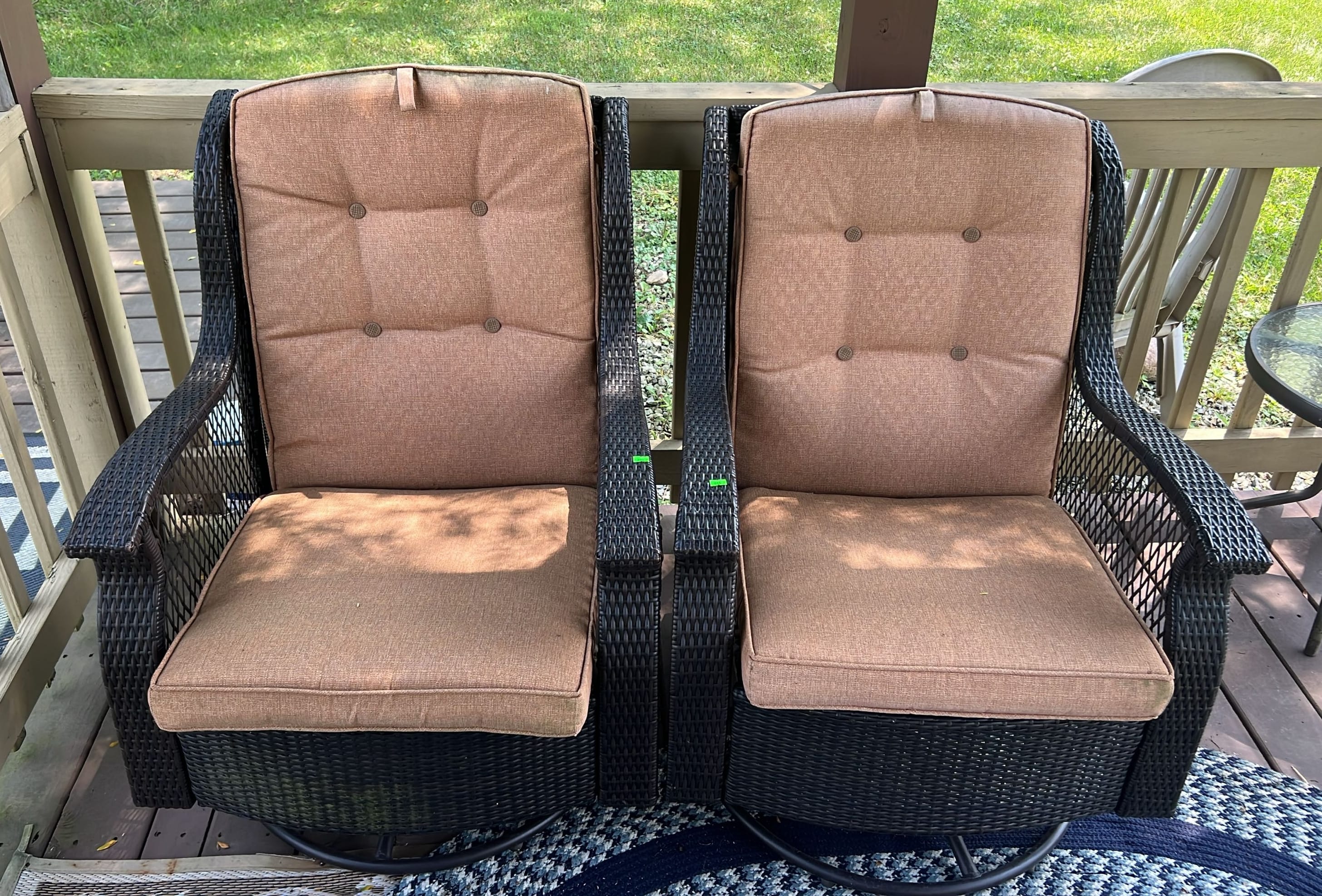 886 2- Plastic Wicker Patio Chairs ,swivel,rocker ,with cushions