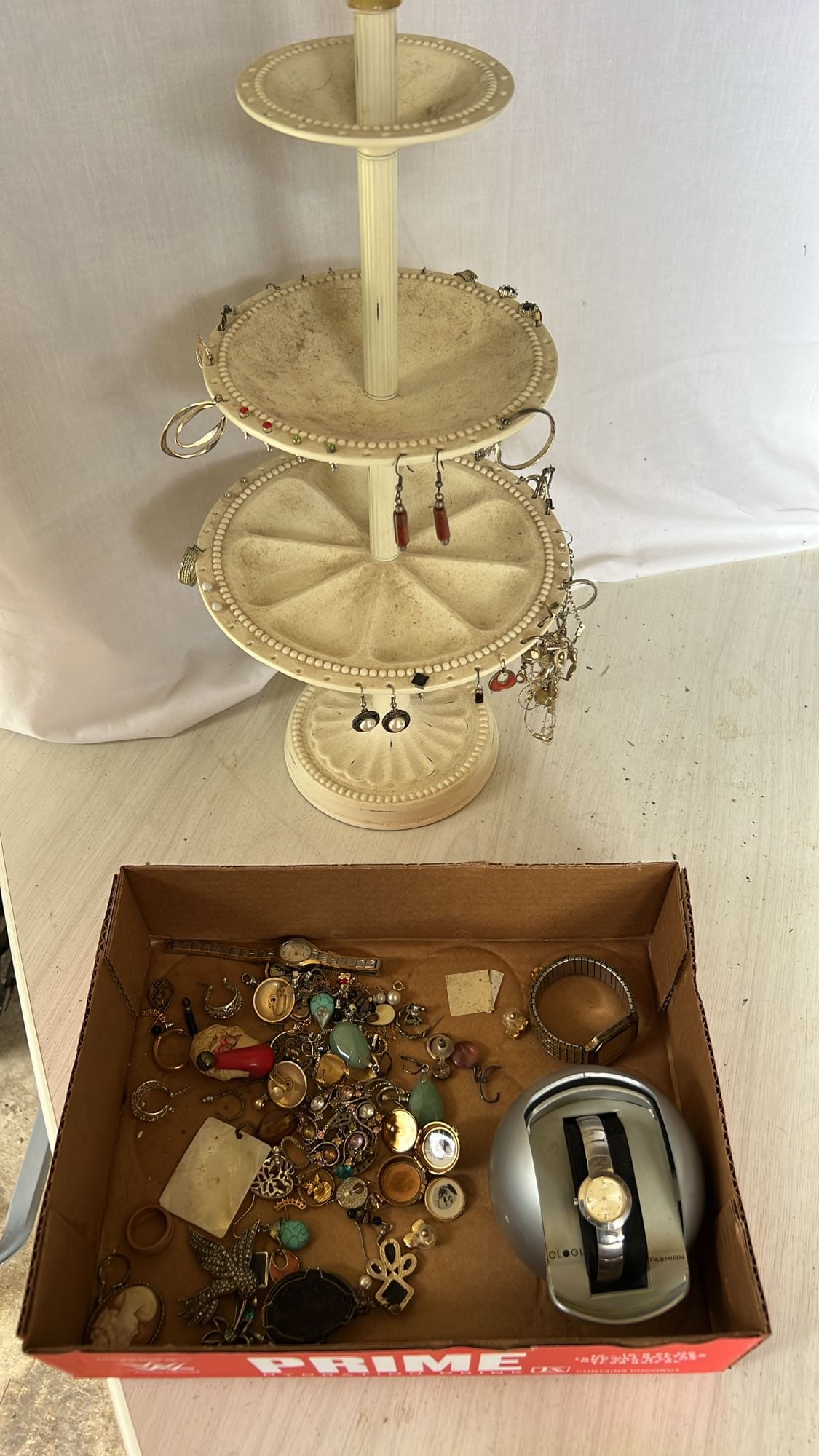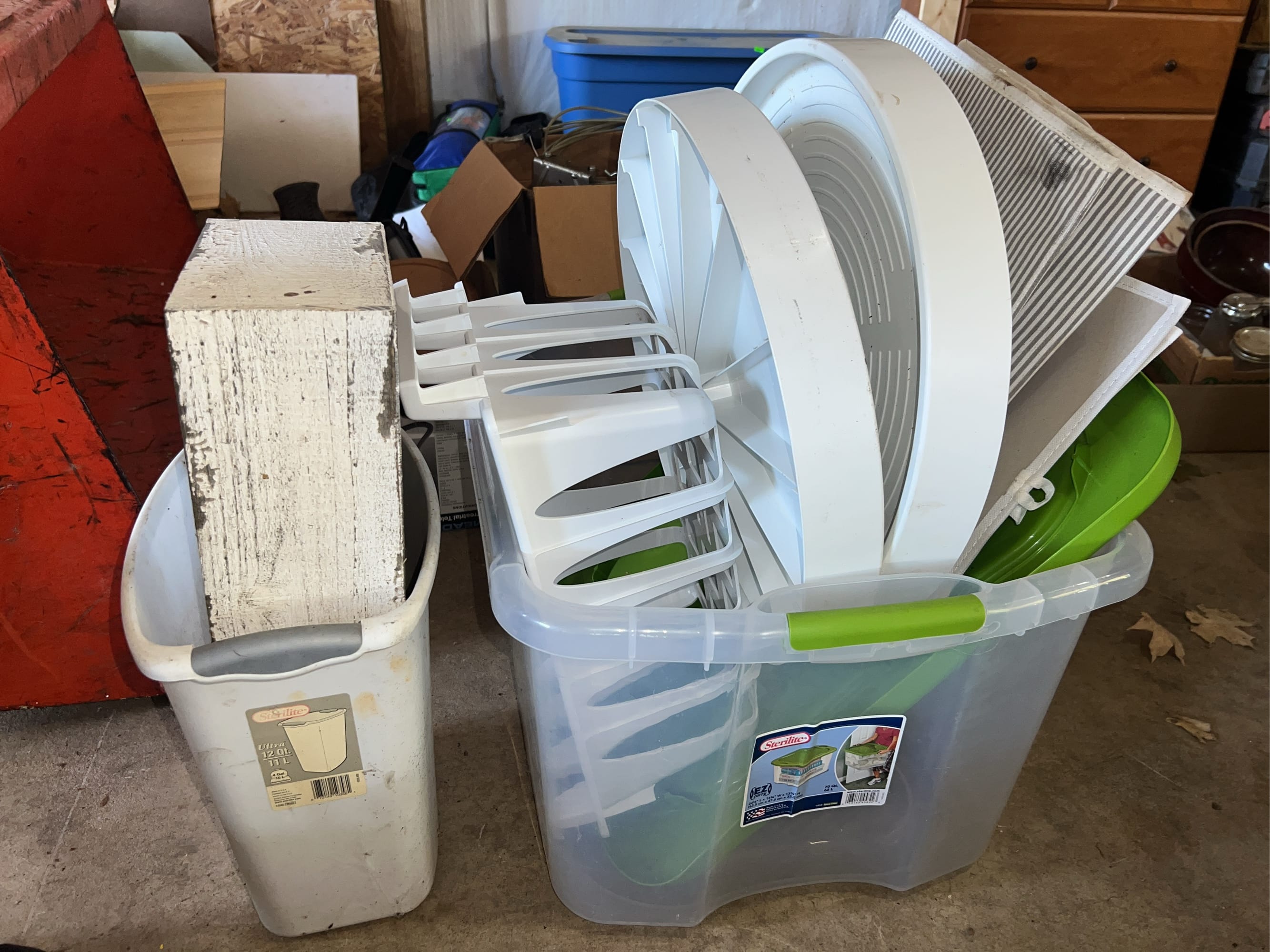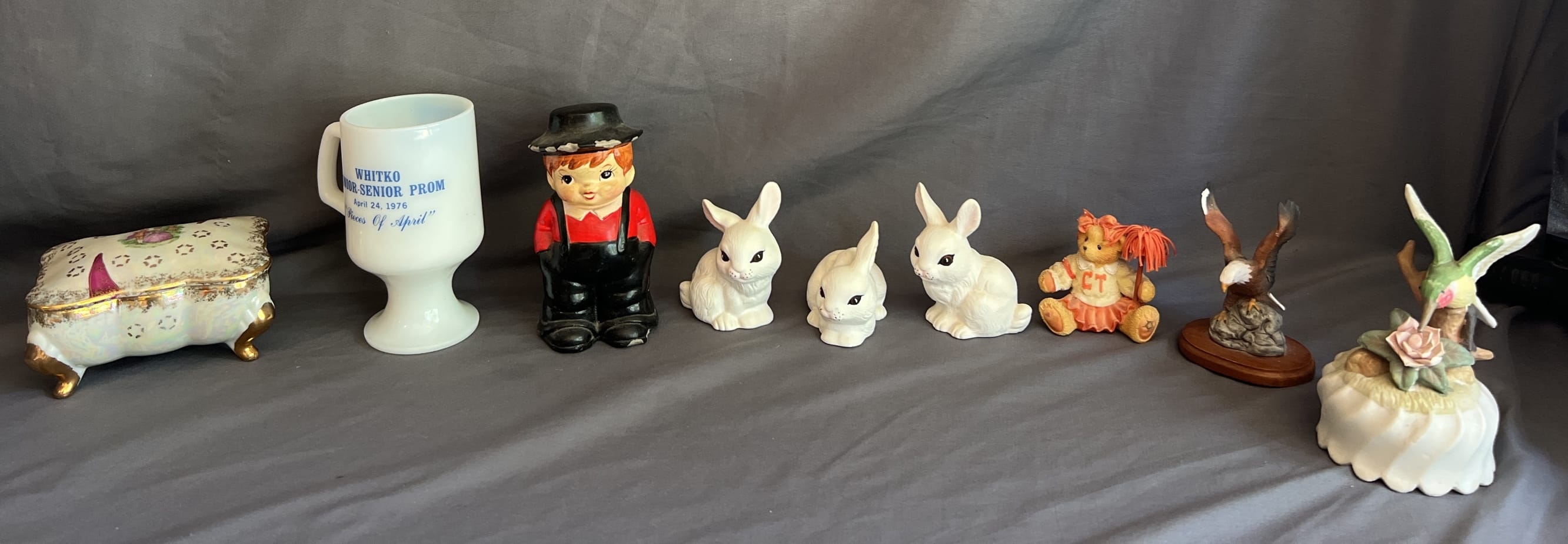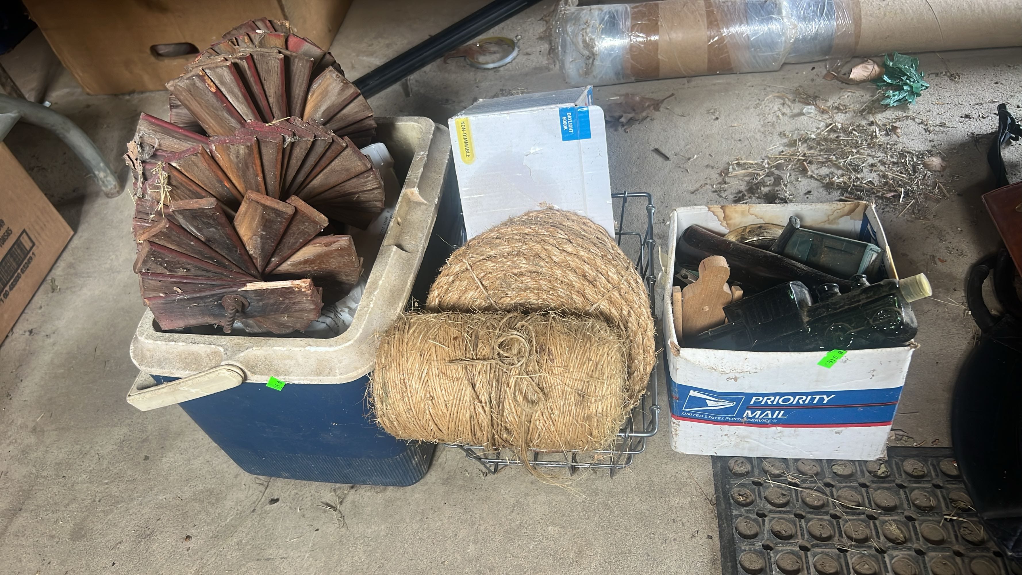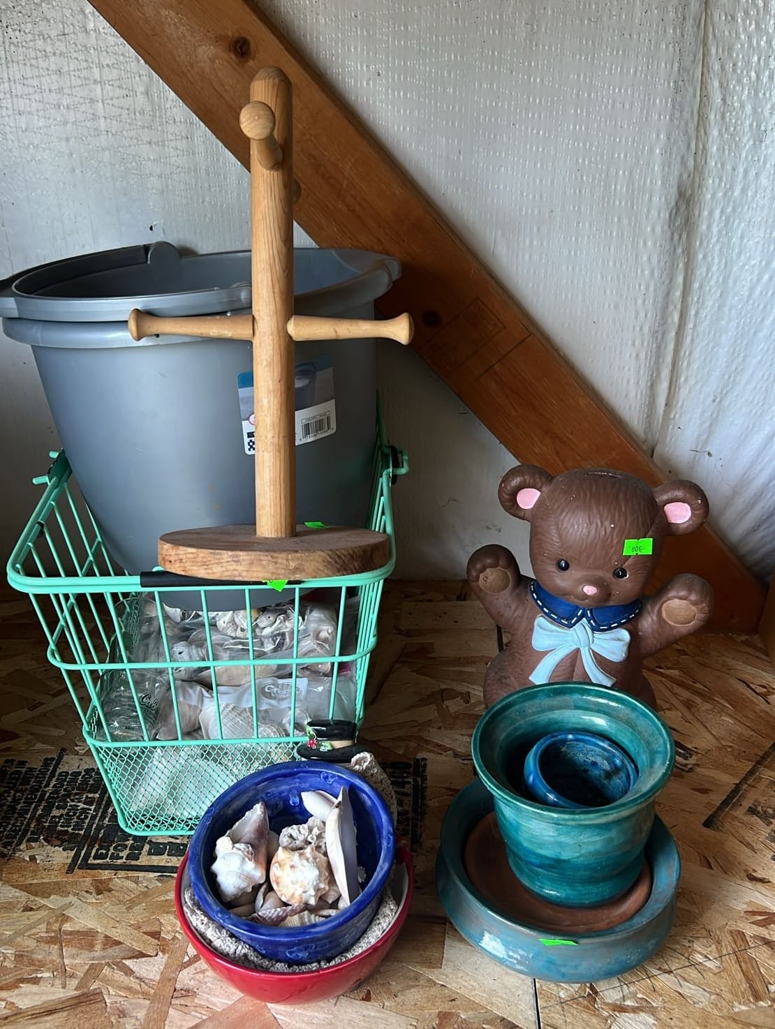 806 Bear bank , flower pots , plastic bucket wood jewelry rack ,shells , miscellaneous