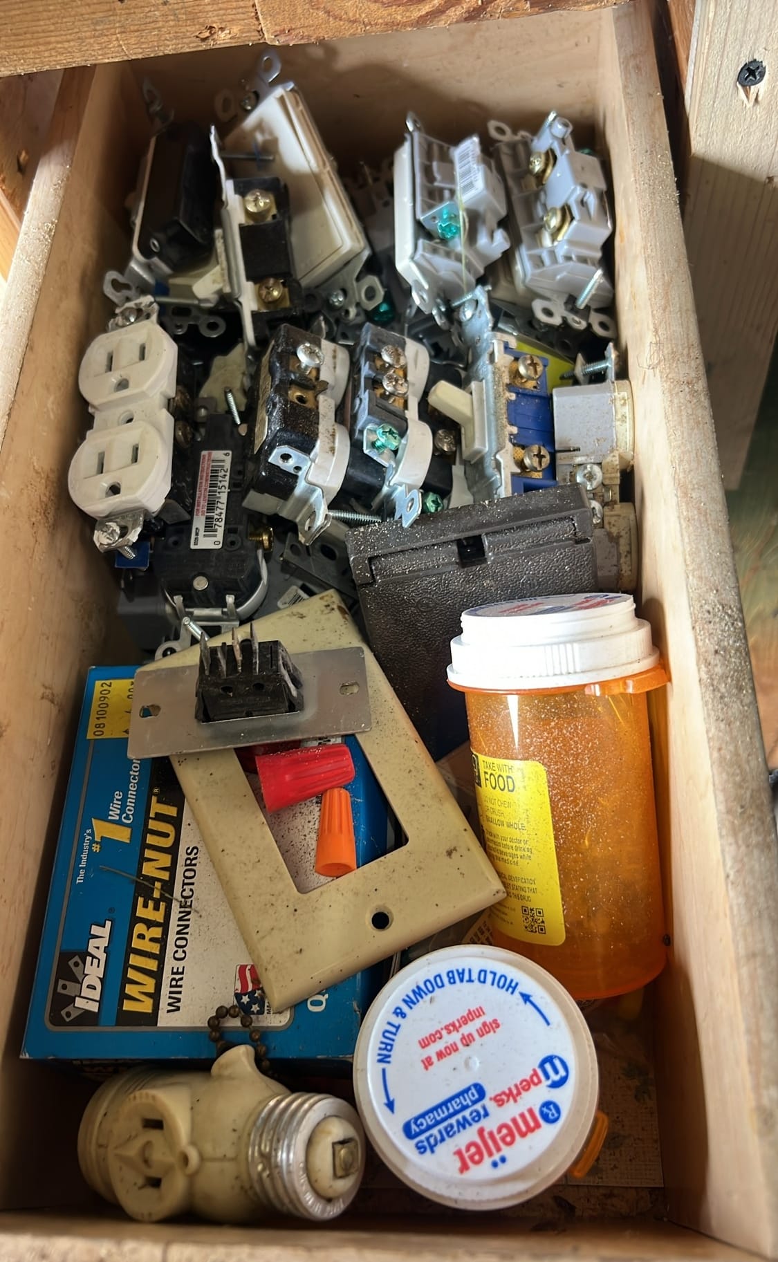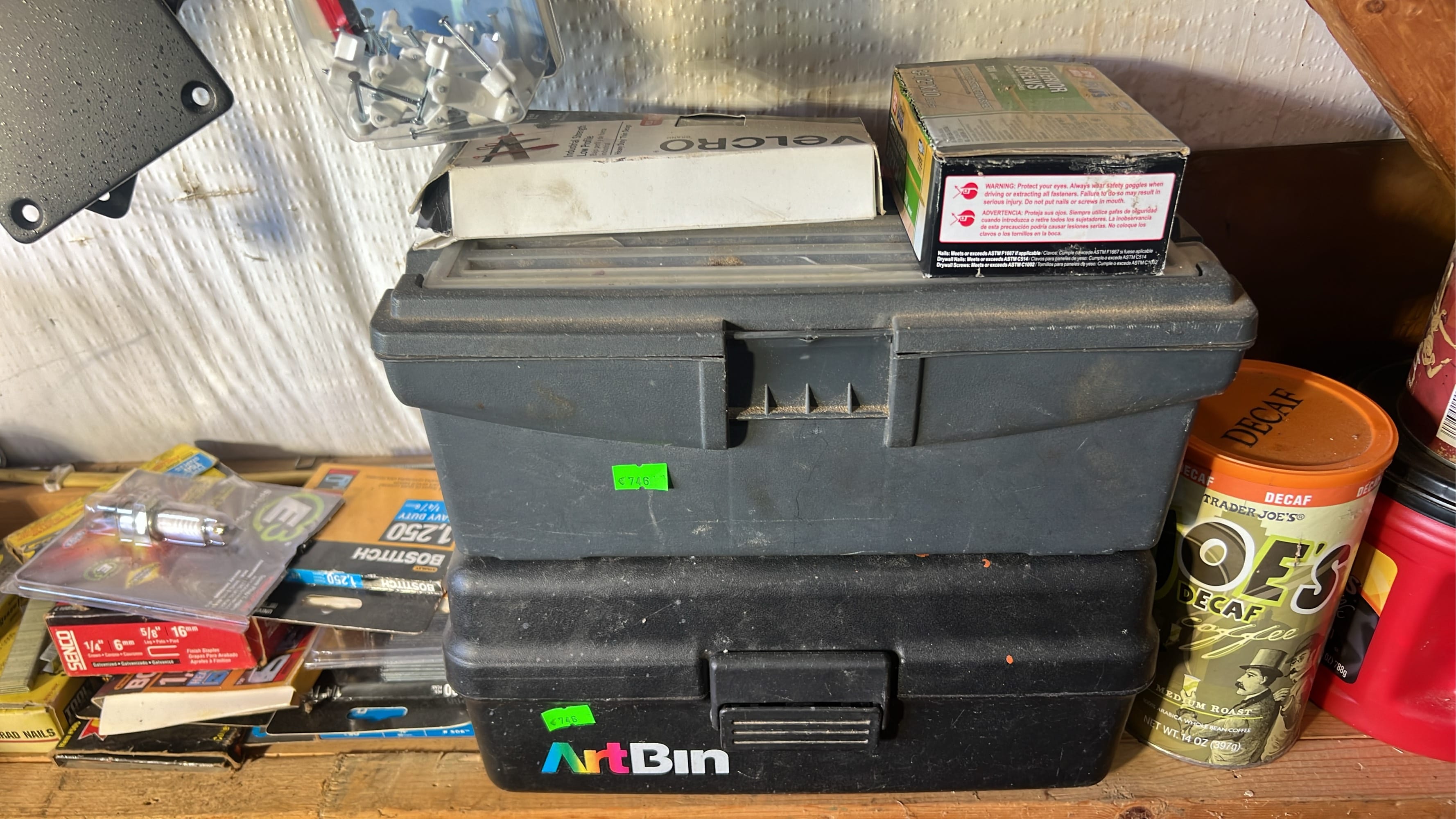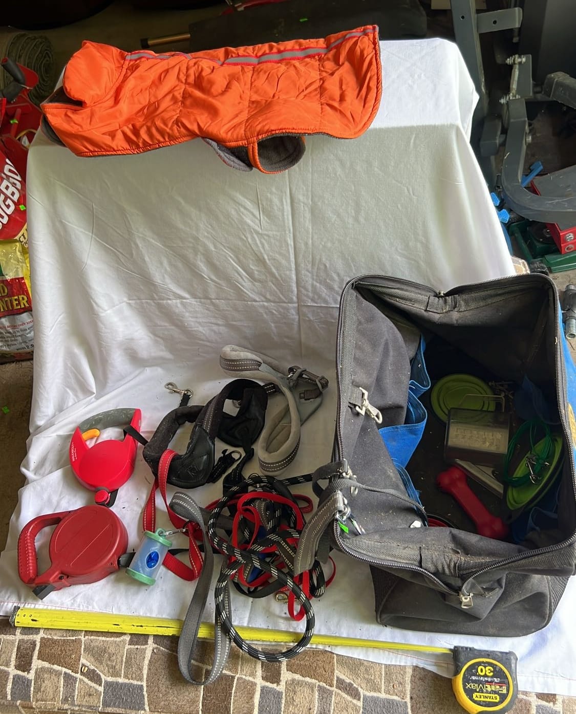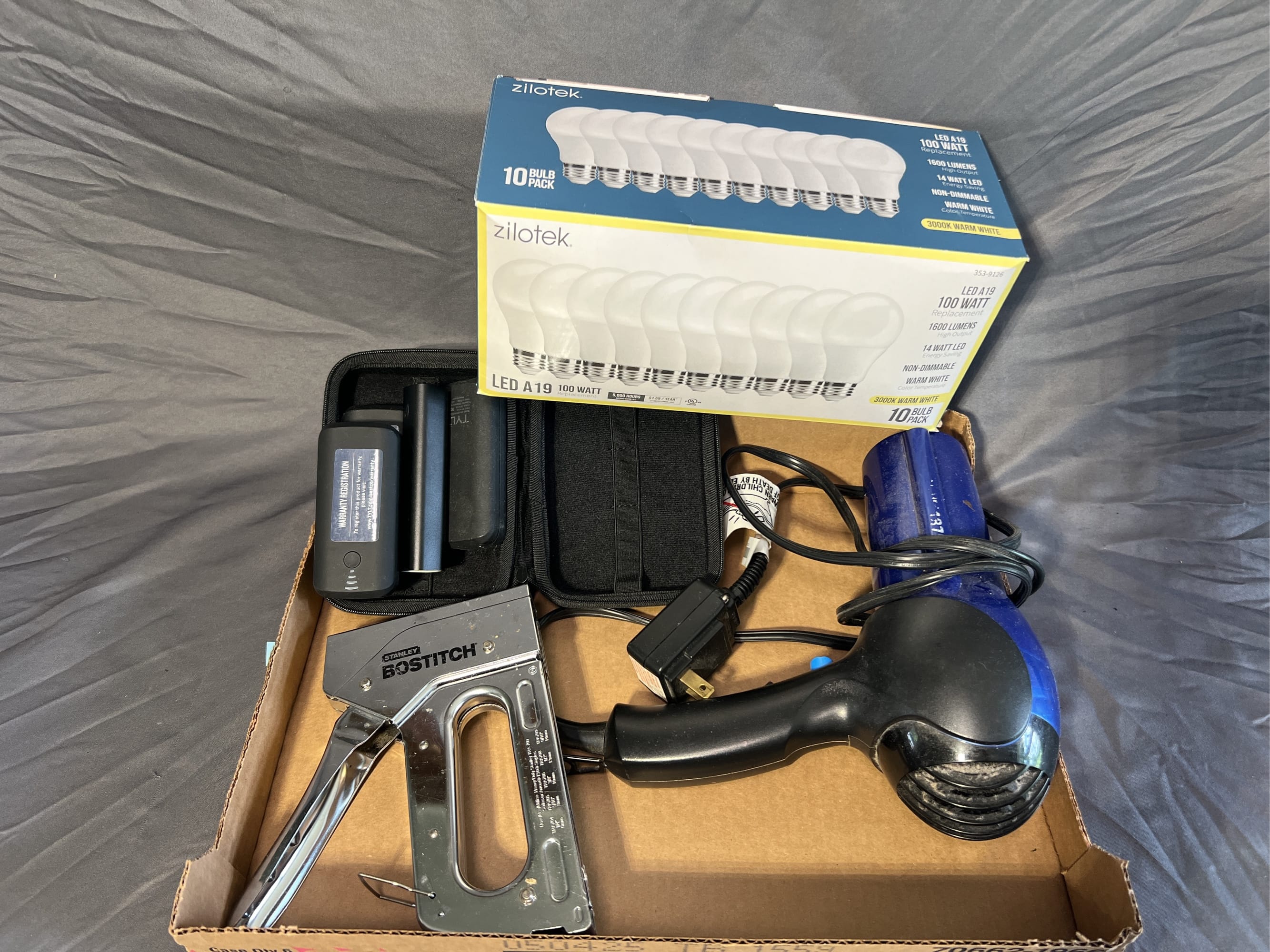 809 Jumper Cables ,1.5 ton Scissor Jack ,mini blind 23”x42”, tru-bolt Classic Electronic knob ,caution light , Westinghouse Air fan ,miscellaneous