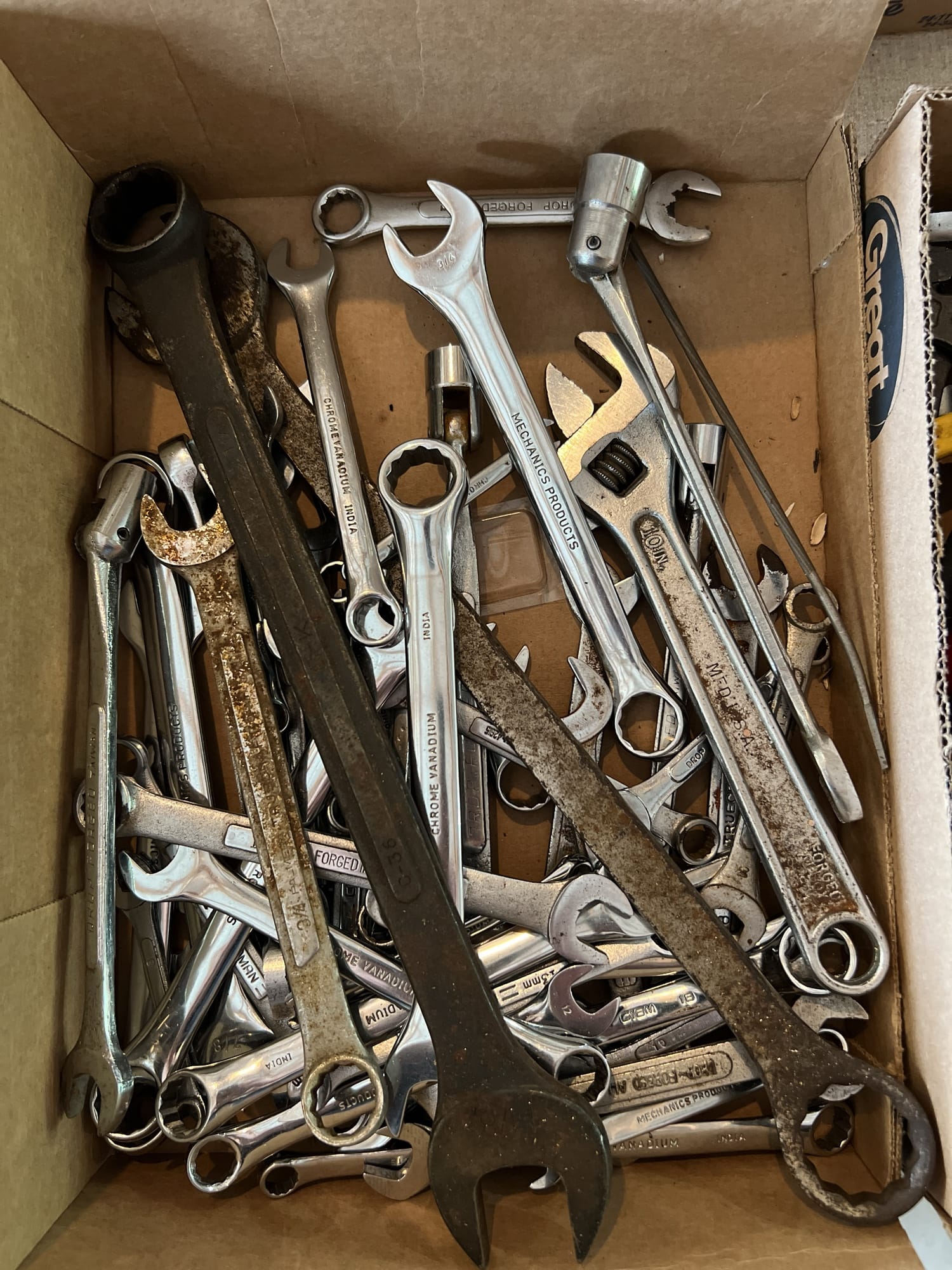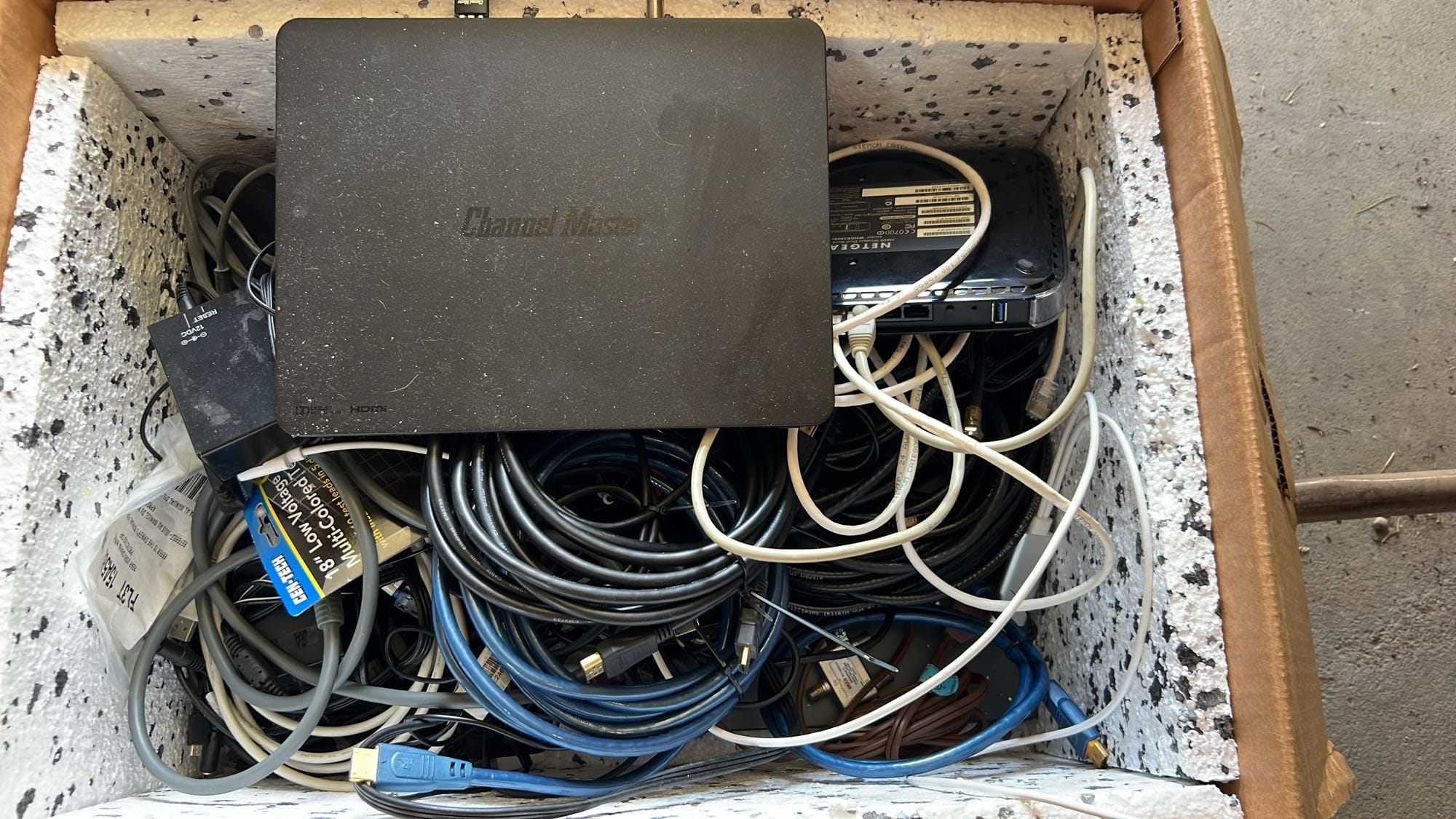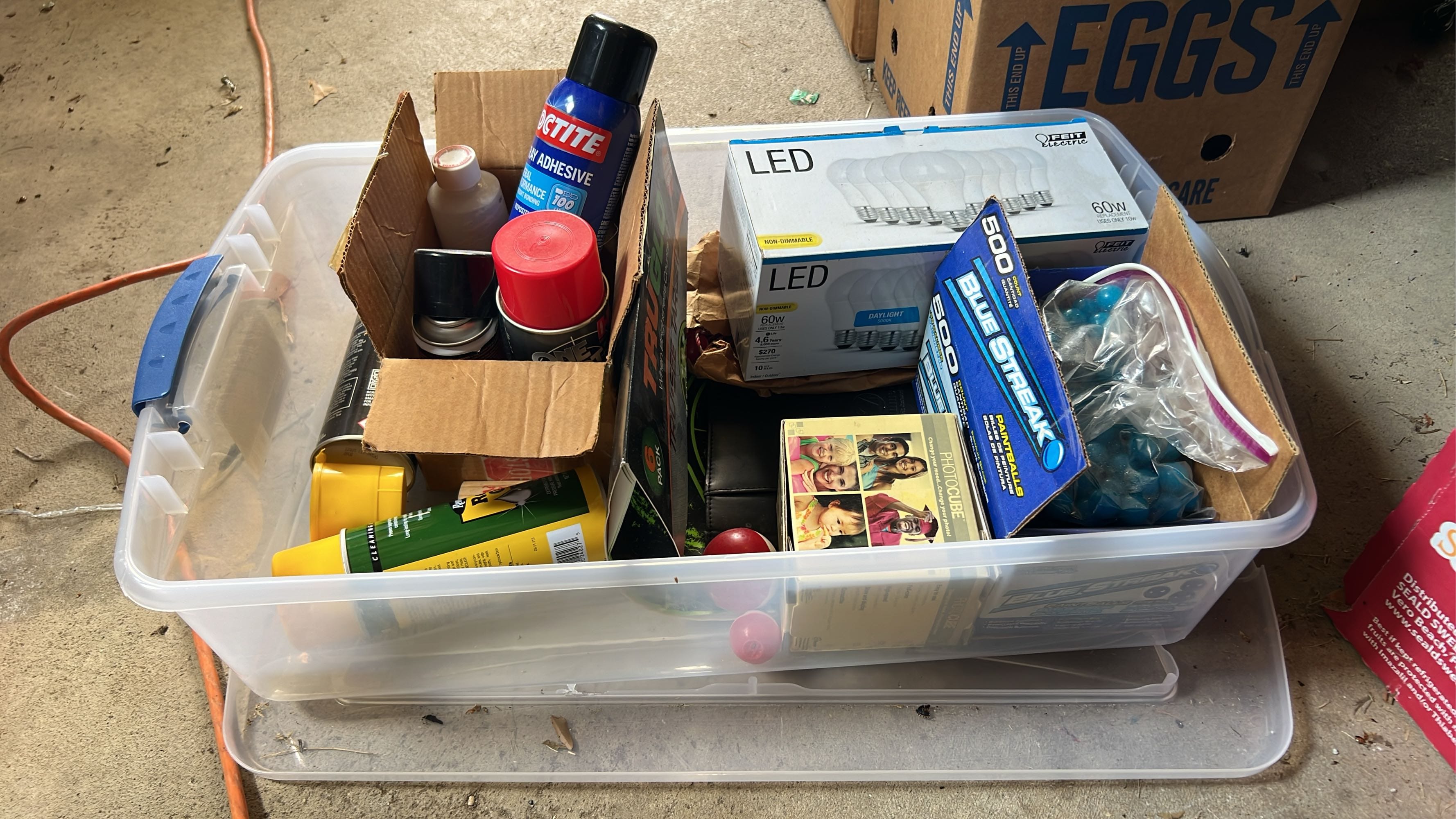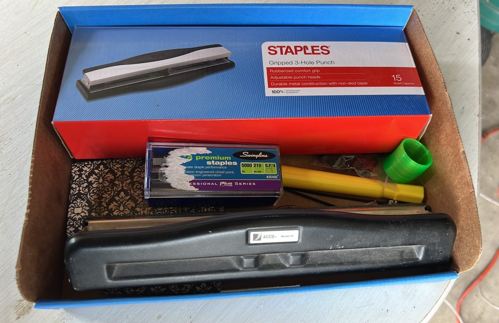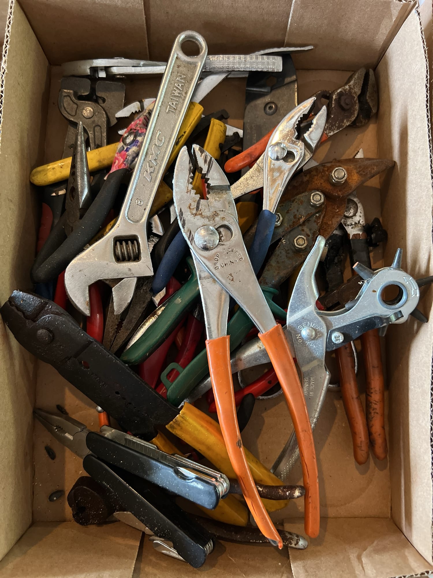 809 Jumper Cables ,1.5 ton Scissor Jack ,mini blind 23”x42”, tru-bolt Classic Electronic knob ,caution light , Westinghouse Air fan ,miscellaneous