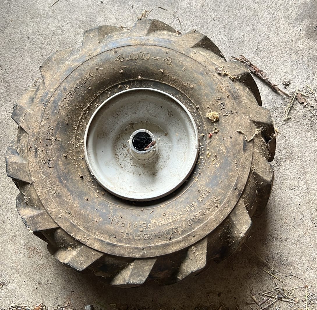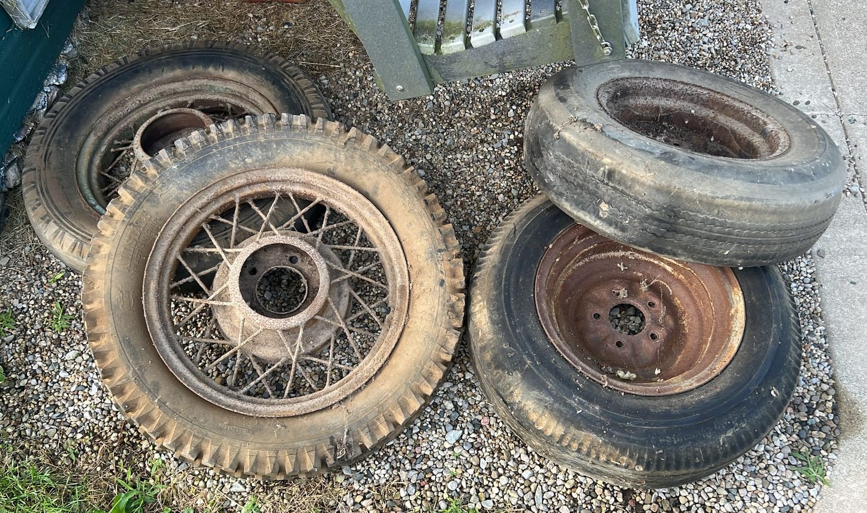 850 2- Metal spoked rims ,18” , 2- 14” tires on 5 bolt rims