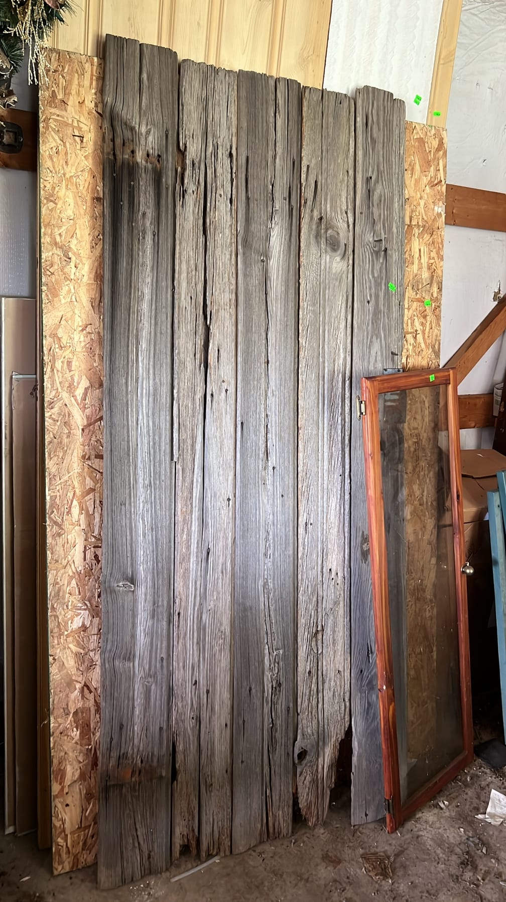 786 Barn siding wood door , 35”x81”, cabinet door with glass , 18.5”x51” ,OSB board , 5/8”x 48”x79”assorted paneling