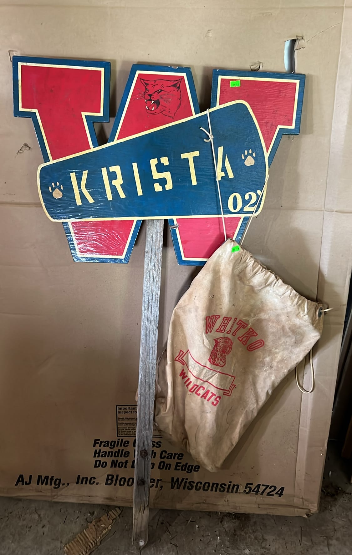 787 whitko W sign ,Krista ‘02 ,25.5”x52”, Whitko Wildcats Draw String Bag