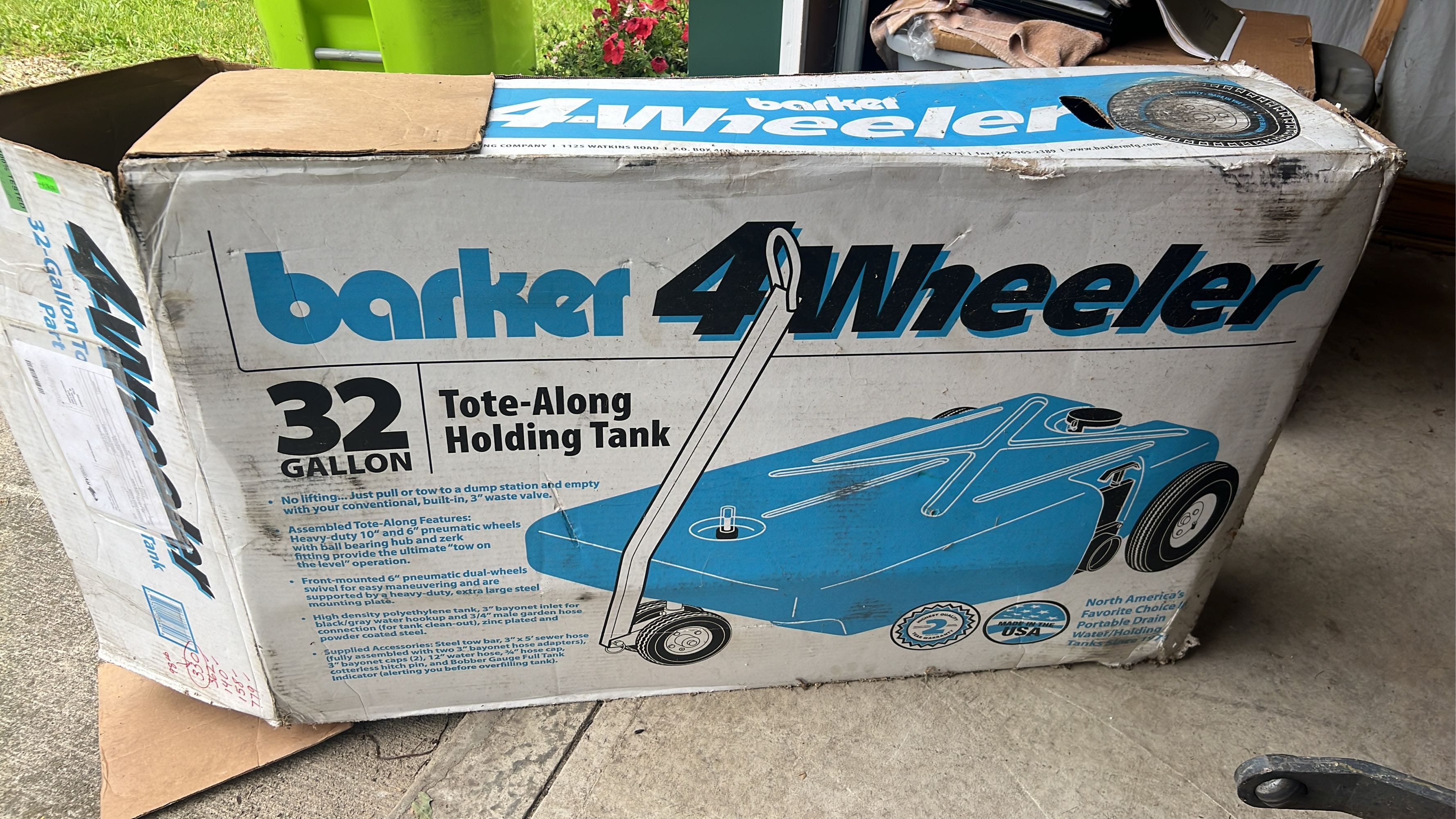 805 Barker 4- Wheeler 32 gal tote-Along holding tank NIB