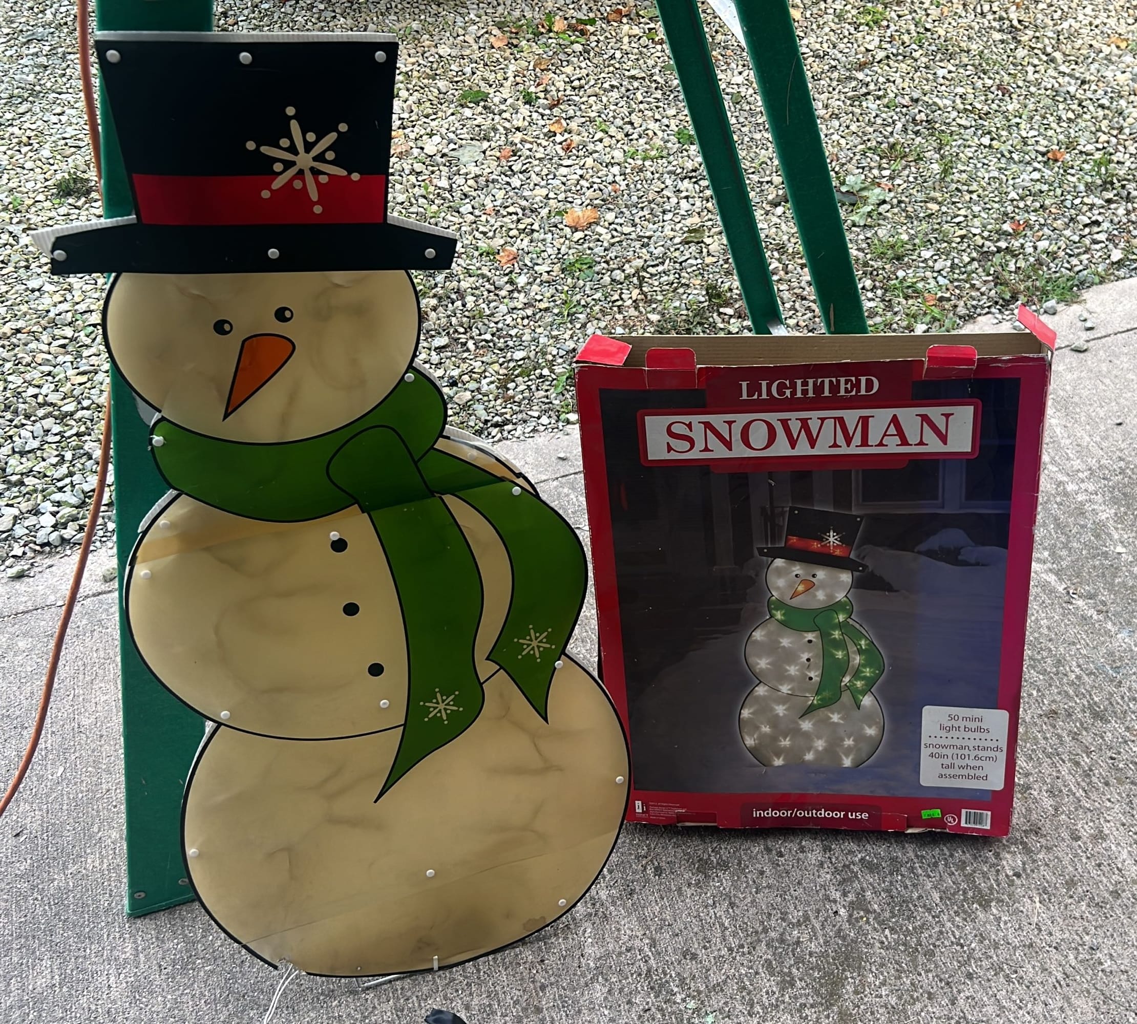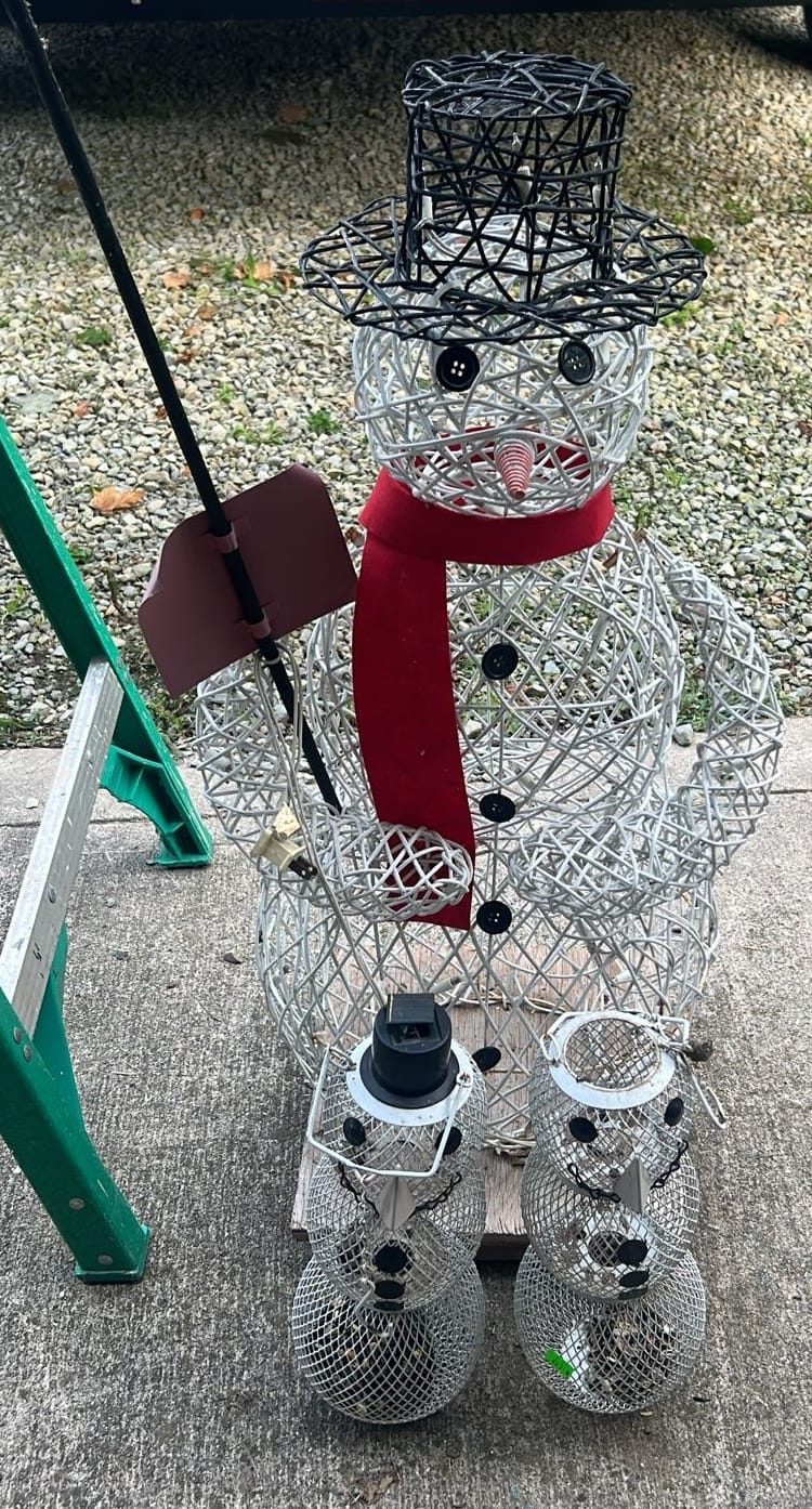 827 Snowman Decorations , 34” is lighted , 2- 14” wire mesh Snowmen