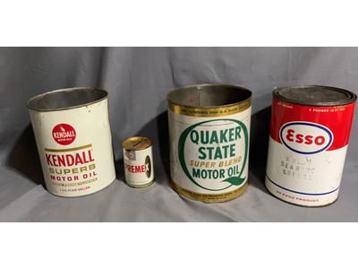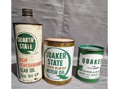 10007 Quaker state cans, gear oil 1qt empty, Motor oil 1qt full, grease 1lbs full