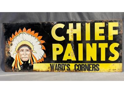 10031 “Chief Paints” Ward’s Corners double sided metal sign 28”L x 12”H (with rust)