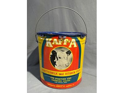 10033 Metal “Kaff-A” Container 12”T x 12 3/4”Dia. - A Buttermilk & Vitamin Feed for Starting and Growing Calves