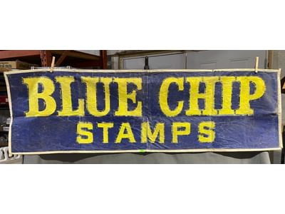 10058 Weatherized Fabric “Blue Chip Stamps” Sign 18” x 58”
