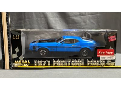 10062 Sun Star 1971 Mustang Mach 1 Metal Die-Cast 1:18 Scale Model - Unopened in Box - Blue