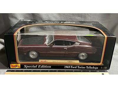 10077 Maisto Special Edition 1969 Ford Torino Talkadega Die-Cast Metal Mod 1:18 Scale (unopened box but plastic cover has fallen)