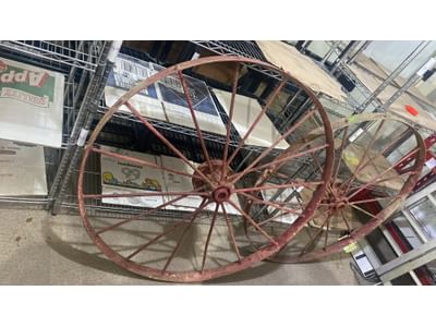 10080 2 Cast Iron Wagon Wheels 44 1/2”
