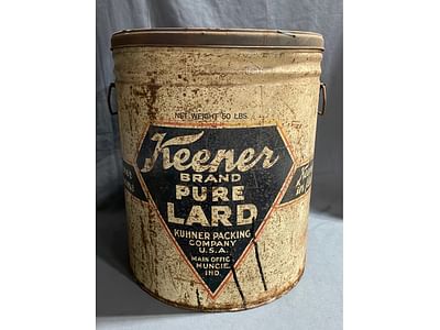 10082 Keener Brand Pure Lard Metal Container 14 3/8”T x 12 1/4”Dia.