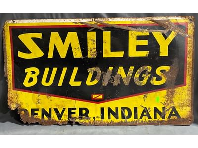10083 Metal Sign (much rust) for “Smiley Buildings” of Denver, Indiana 27 7/8” x 15 3/4”