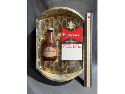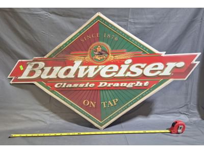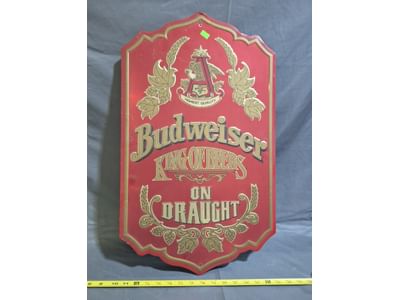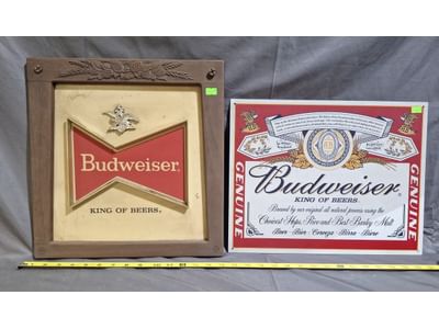10334 Budweiser plastic sign 14.5x15" and tin sign 12x16"