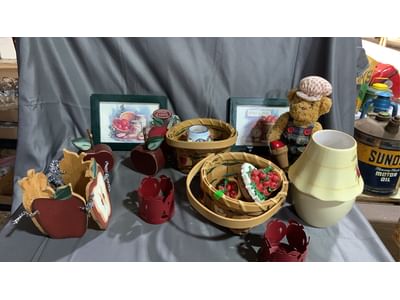 10203 House Decor Assortment baskets, small teddy bear on stand, tea light candle holders