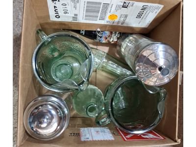 10218 2 - Coca - Cola Glass Pitcher, Coca - Cola Glass Straw Canister, Barbicide Glass Canister, Glass Coca - Cola Bottles