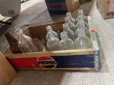 10219 Pepsi wood crate with clear glass Pepsi bottle assortment