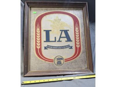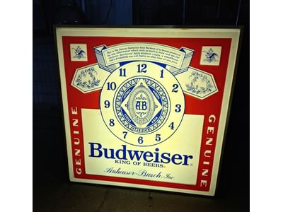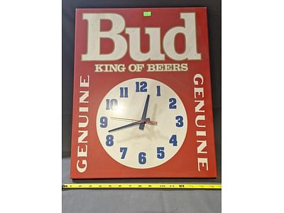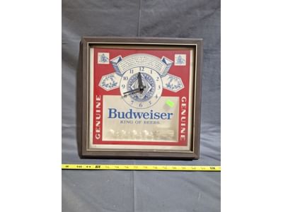 10270 Budweiser plastic clock face - no hands, clock works in aluminum frame, light works 35x36