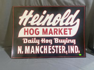 10225 Heinold Hog Market Daily Hog Buying N. Manchester, IND Aluminum Sign 28x20” (reproduction)