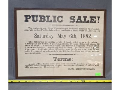 10247 Public Sale advertising cardstock taped to glass panel 14x10" wertenbeger