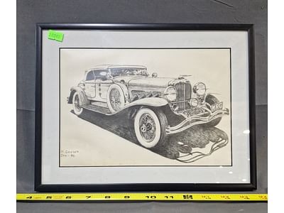 10249 Pencil drawing classic car framed 12x9.5" signed M. Griener