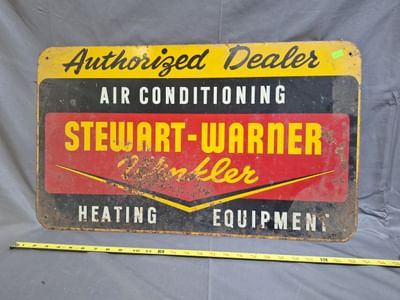 10250 Stewart-Warner metal double sided authorized dealer sign 27x16" rusty
