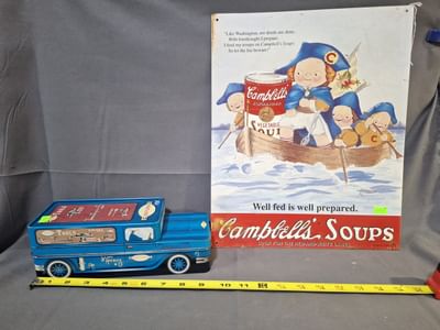 10256 Craftsman Sears &roebuck truck tin and Campbell Soups tin sign 15x12"