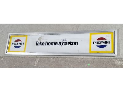 10300 Pepsi take home a cold carton glass machine insert sign in aluminum frame 12x55"