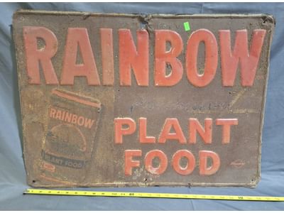 10310 Rainbow Plant food embossed metal sign 19x27" rusty